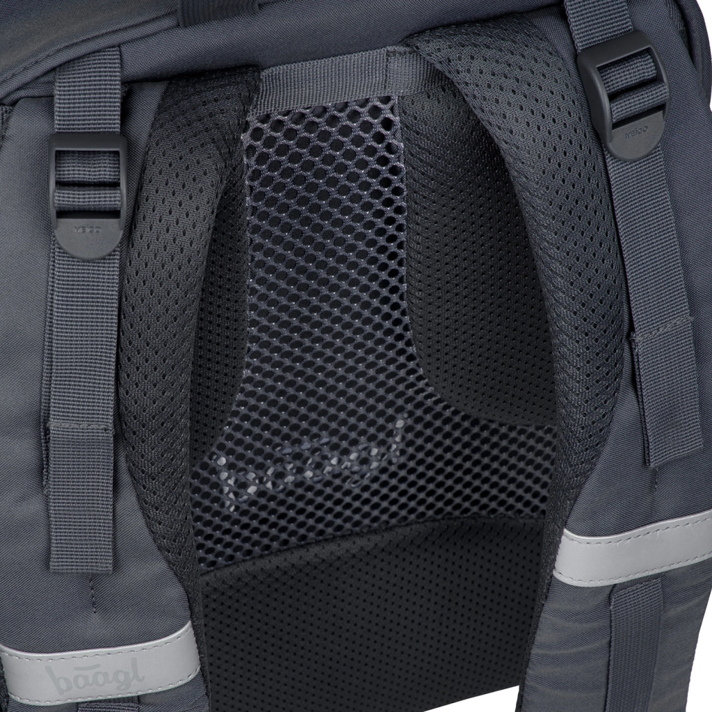 Lekki i ergonomiczny szkolny plecak BAAGL Core Logo dla dzieci od 3. klasy oferuje pojemność 25 l, zaledwie 900 g, anatomicznie ukształtowane plecy z wentylacją oraz wyściełaną kieszeń na laptop 15". Wykonany z recyklingowanego, wodoodpornego materiału z certyfikatem GRS, posiada niezawodne zamki YKK, elementy odblaskowe i praktyczny podział na trzy komory.