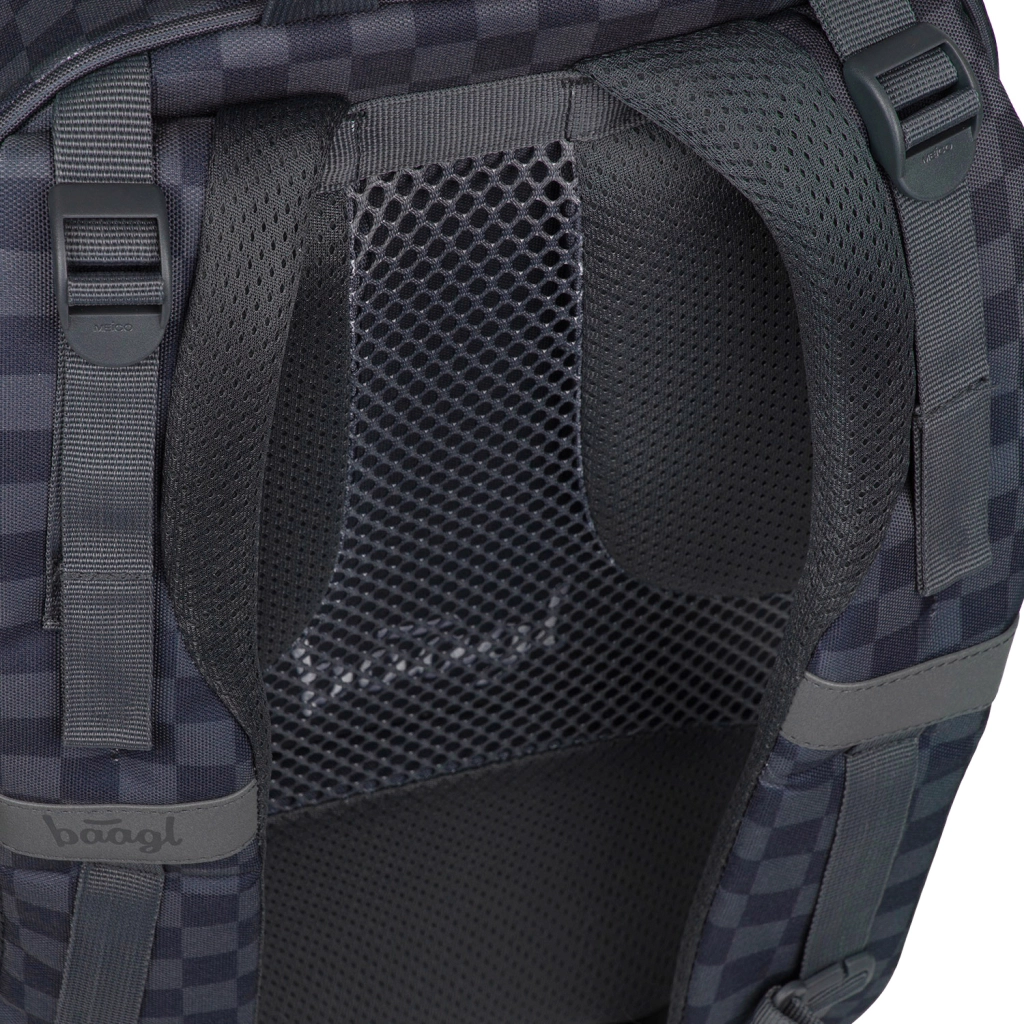 BAAGL Core Ska to przemyślany plecak szkolny do codziennego noszenia. Dzięki ergonomicznemu profilowi pleców z wentylacją, regulowanym i wyściełanym szelkom oraz paskowi piersiowemu równomiernie rozkłada obciążenie i zapewnia wygodę przez cały dzień. Lekka konstrukcja o pojemności 25 l pomieści podręczniki, zeszyty oraz laptop do 15".