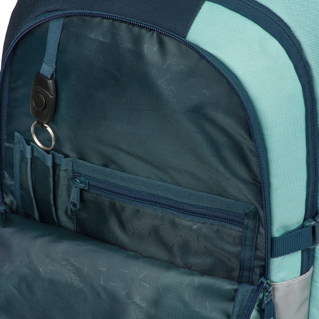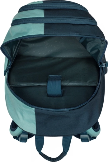 Trzy oddzielnie zamykane komory zapewniają przejrzystą organizację szkolnych akcesoriów. Wewnątrz znajdziesz organizer, kieszenie na drobiazgi, kółko na klucze oraz wyściełaną kieszeń 15" na laptop lub tablet. Boczne kieszenie z mocnego materiału idealnie nadają się na butelkę z napojem. Przednie paski łatwo przytrzymają deskorolkę, bluzę lub kurtkę.
