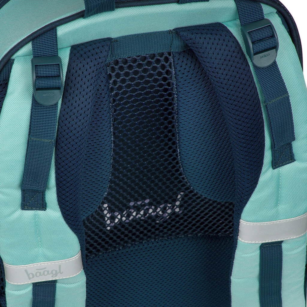 BAAGL Skate Petrol GRS łączy nowoczesny design, ergonomię i zrównoważoną produkcję. Anatomicznie ukształtowane plecy ze wzmocnieniem w części lędźwiowej oraz oddychająca wyściółka zapewniają całodzienny komfort. Dzięki w pełni regulowanym paskom kompresyjnym plecak świetnie dopasowuje się do sylwetki i stabilnie utrzymuje ładunek.
