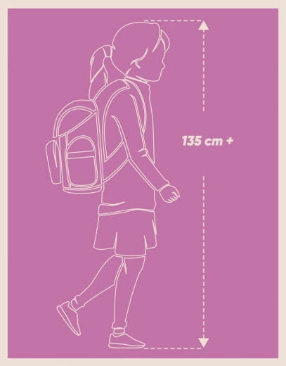 Regulowany wysoko system pleców dopasowuje się do sylwetki w zakresie 135–185 cm. Elastyczne, wyściełane szelki oraz oddychające plecy zapewniają komfort nawet podczas całodziennego noszenia.