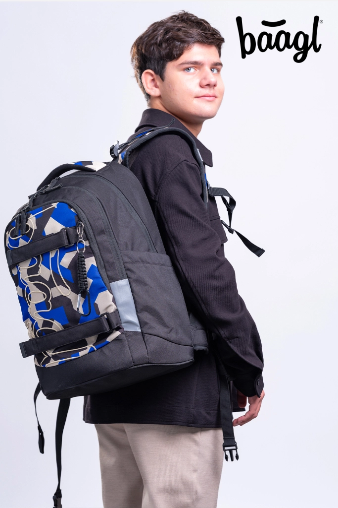 Zestaw szkolny BAAGL Skate Max Variety to idealny wybór dla uczniów od 3. klasy oraz studentów, aż do wzrostu 185 cm. Lekki plecak (1150 g) z przesuwnym systemem pleców dopasujesz w czterech rozmiarach, posiada odpinany pas biodrowy, wzmocnienie z pianki EVA oraz wzmocnioną rączkę o nośności do 8 kg. Recyklingowany, wodoodporny materiał oraz elementy odblaskowe zapewniają trwałość i bezpieczeństwo w drodze do szkoły.