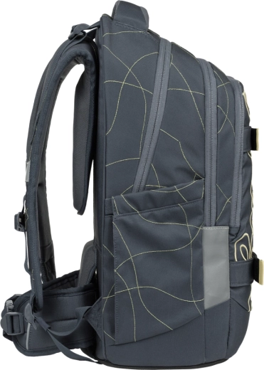Zestaw szkolny BAAGL Skate Max Wave został zaprojektowany dla uczniów mniej więcej od 3. klasy szkoły podstawowej aż po szkołę średnią (135–185 cm). Główną gwiazdą jest lekki plecak (1150 g) z regulowanym systemem pleców w czterech rozmiarach, który idealnie dopasowuje się do wzrostu dziecka. Sztywne wzmocnienie EVA utrzymuje kształt, odpinany pas biodrowy zapewnia stabilność, a elementy odblaskowe zwiększają widoczność o zmierzchu.