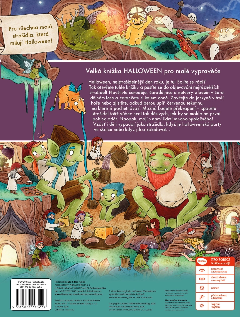 Halloween już tu jest! Otwórz książkę i wyrusz z dziećmi w podróż do bajkowych światów pełnych magicznych postaci. Czeka was wizyta u czarownic, tajemnicza jaskinia w górze trolli oraz spotkanie z bagiennymi potworami. A może odkryjecie, że nawet wampiry mają swoje małe sekrety i nie są tak przerażające, jak mogłoby się wydawać.