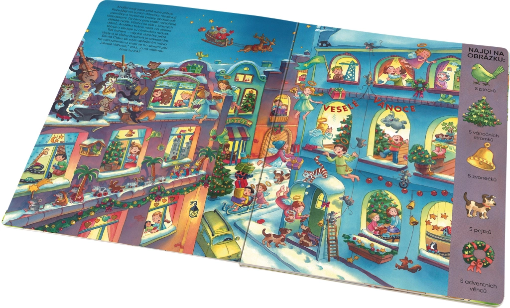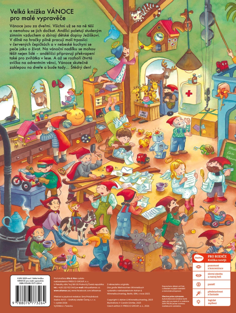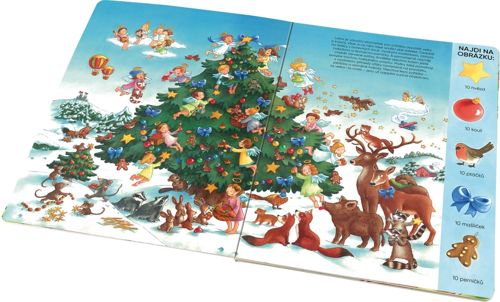 Zwiedzaj warsztat krasnali, obserwuj aniołki zbierające listy do Dzieciątka i zajrzyj do niebiańskiej kuchni, gdzie trwa intensywne pieczenie. Nie zapomniano też o zwierzętach w lesie – i dla nich przygotowano niespodziankę. Dzięki dużemu formatowi i zrozumiałym poleceniom książka jest idealna dla przedszkolaków i młodszych dzieci w wieku szkolnym.