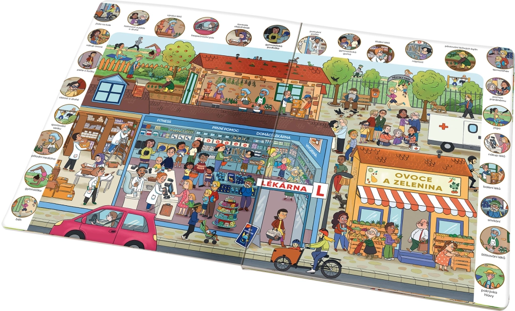 Ta wielkoformatowa książka zaprasza dzieci do odkrywania tętniącego życiem miasta, w którym wszyscy dbają o zdrowie – od porannego zgiełku w szpitalu po popołudniowe powroty do domu. Dzieci zajrzą do gabinetów, poczekalni i aptek, zrozumieją też, że choć czasem się boimy, w placówkach medycznych znajdziemy pomoc.