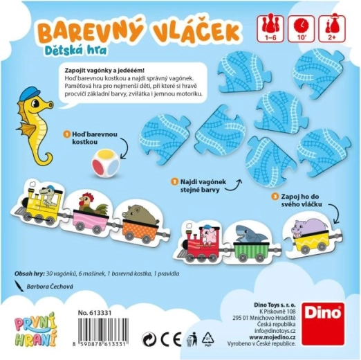Mechanika jest łatwa: gracz rzuca kolorową kostką i dopasowuje wagonik w odpowiednim kolorze do lokomotywy. Dzięki wyrazistym barwom i uroczym ilustracjom dzieci uczą się poprzez zabawę, wzmacniają koncentrację i cierpliwość, a razem z rodzicami przeżywają mnóstwo radości.