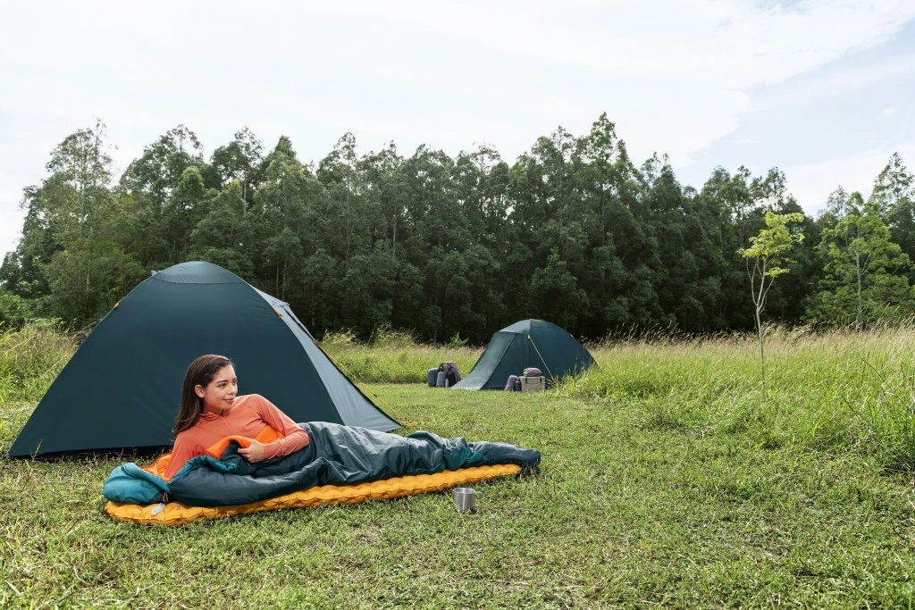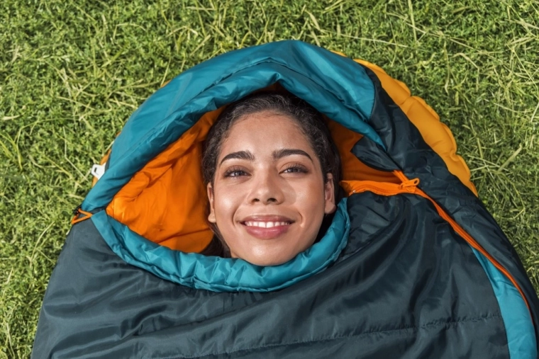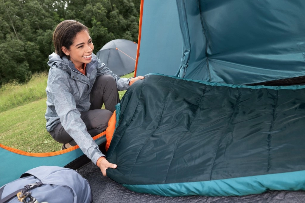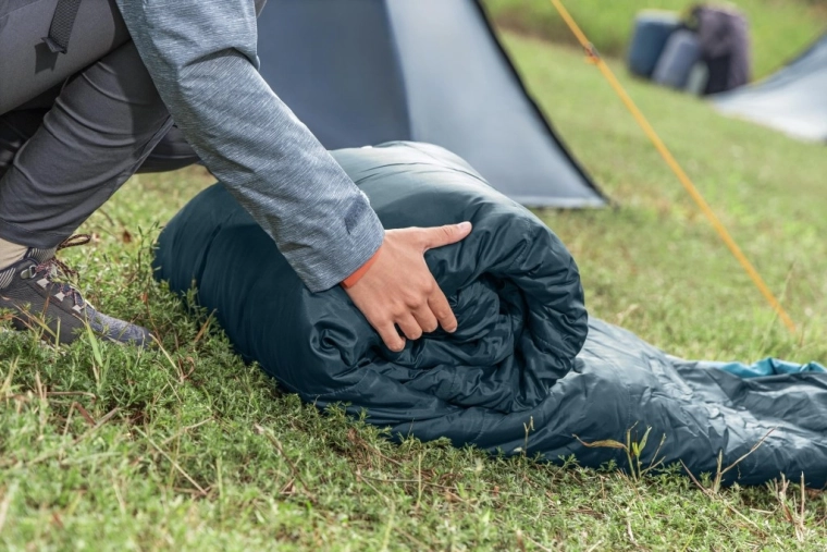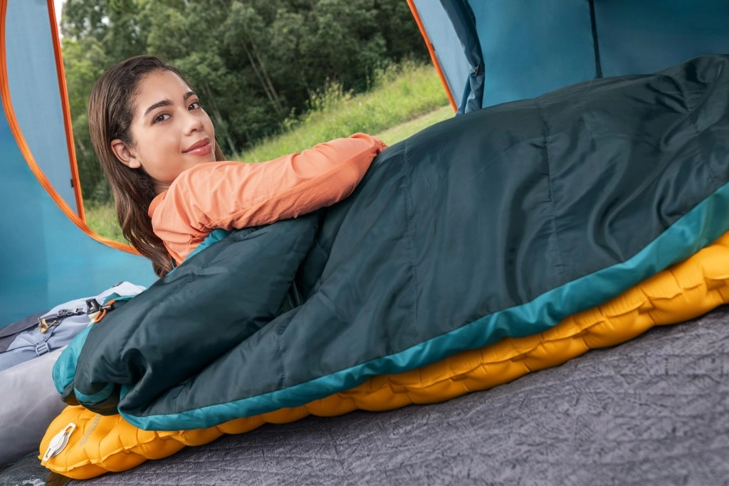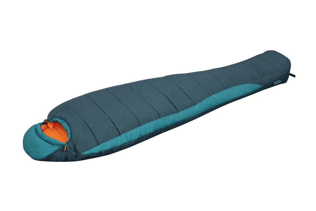 Podwójne wypełnienie z recyklingu 2 × 150 g/m², temperatura komfortu 4 °C i kształt mumii dla efektywnego utrzymania ciepła. Idealny na wiosnę, jesień i łagodną zimę.