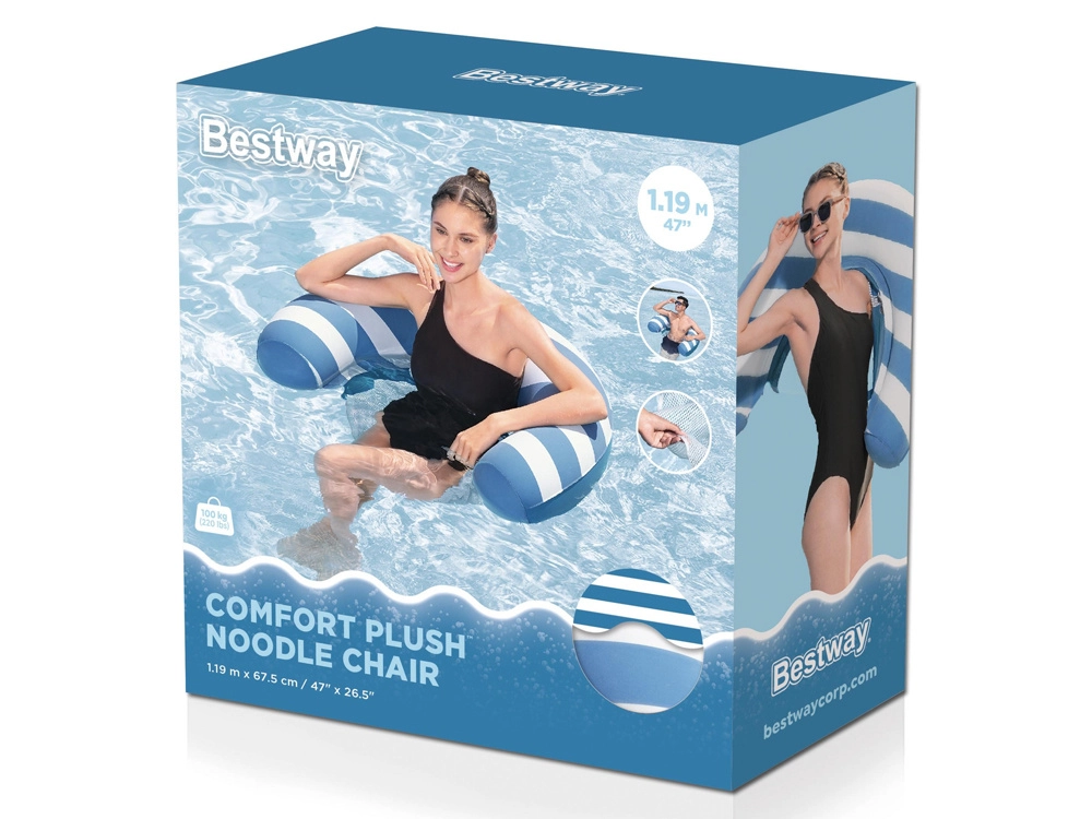 Wykorzystaj letni relaks na maksimum. Wodne krzesło BESTWAY Comfort Plush łączy miękką, aksamitną powierzchnię z chłodzącym siateczkowym siedziskiem, które przyjemnie ochładza ciało podczas odpoczynku na tafli wody. Dzięki efektowi zmiany koloru po zamoczeniu pływak zyskuje atrakcyjniejszy, bardziej nasycony odcień.