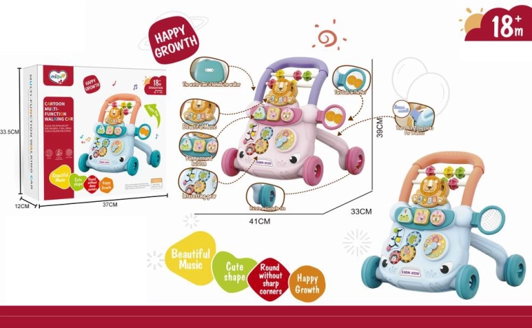 Różowy chodzik pchacz w kształcie lwa to świetny pomocnik dla dzieci uczących się chodzić. Lekka i stabilna konstrukcja z bezpiecznego plastiku bez ostrych krawędzi zwiększa pewność podczas ruchu, a zintegrowane efekty dźwiękowe stymulują zmysły i motywują do kolejnych kroków.