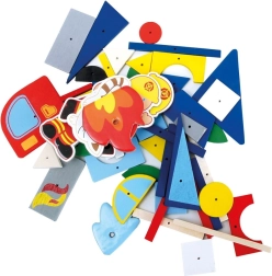 W zestawie znajduje się młotek, gwoździki i drewniane elementy o różnych kształtach i kolorach – łącznie 168 sztuk. Elementy można w każdej chwili łatwo zdjąć i układać ponownie, dzięki czemu zabawa wspiera cierpliwość, logiczne myślenie i kreatywne rozwiązywanie zadań. Wysoka jakość marki BINO gwarantuje trwałość i bezpieczeństwo podczas zabawy.