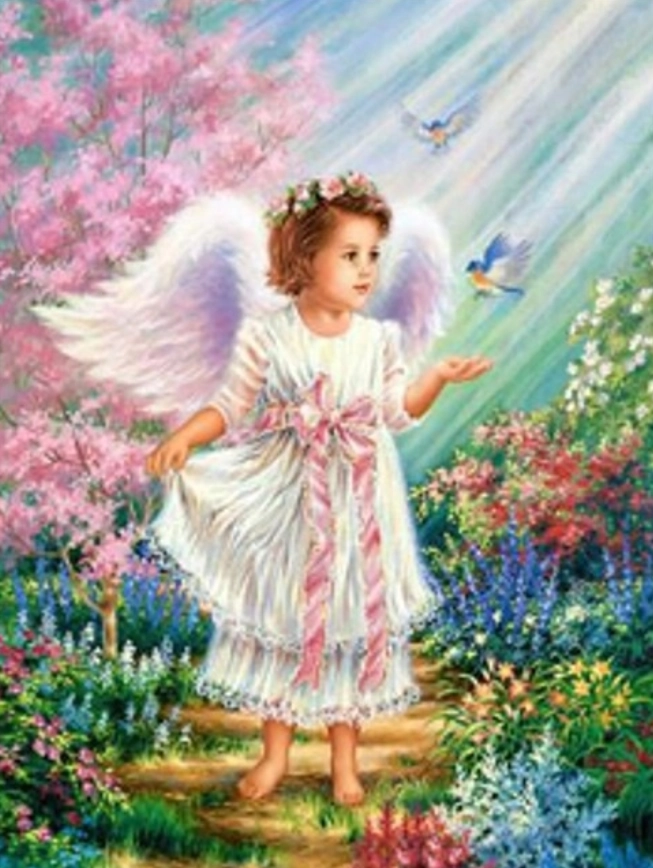 Malowanie diamentowe to popularna technika relaksacyjna, w której stopniowo przyklejasz drobne kamyczki na oznaczone miejsca na płótnie, tworząc lśniący mozaikowy obraz. Motyw aniołka z ptaszkami zachwyca subtelnymi detalami i świetlistymi refleksami, dzięki czemu gotowe dzieło stanie się piękną dekoracją i prezentem.