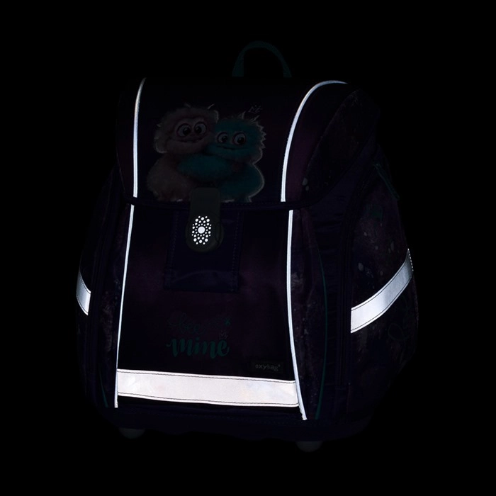 Szkolny zestaw OXYBAG Premium Light Monster to idealny wybór dla uczniów od wzrostu ok. 121 cm. Odciążony plecak (970 g) z ergonomiczną, oddychającą wyściółką i szerokimi szelkami zapewnia komfort przez cały szkolny dzień. Dzięki sztywnemu, wodoodpornemu dnu z nóżkami plecak stabilnie stoi i chroni zawartość przed wilgocią.