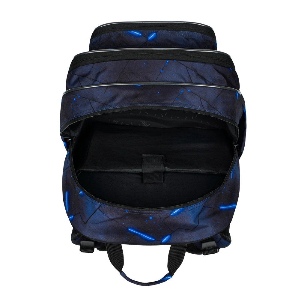 Zestaw szkolny 3 w 1 Cubic Flash łączy przemyślaną ergonomię, dużą przestrzeń do przechowywania i nowoczesny design. Plecak oferuje trzy oddzielne komory z inteligentnym wnętrzem, w tym wyściełaną kieszeń na laptop 15'' lub tablet oraz odpinaną karabińczykę na klucze. Dzięki regulowanym szelkom ramiennym, pasowi piersiowemu i bocznym paskom kompresyjnym plecak doskonale dopasowuje się do sylwetki i zapewnia wygodę przez cały dzień.