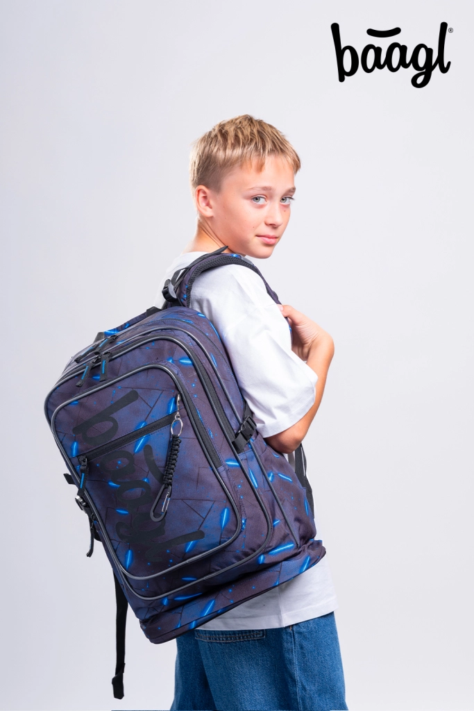 Stylowy szkolny zestaw BAAGL Cubic Flash obejmuje ergonomiczny plecak z organizerem i kieszenią na laptop 15'', pojemny piórnik oraz praktyczny worek na obuwie lub strój sportowy. Lekkie wykonanie, wodoodporny materiał, elementy odblaskowe dla bezpieczeństwa oraz zrównoważona certyfikacja GRS sprawiają, że ten zestaw to idealny wybór na każdy dzień w szkole.