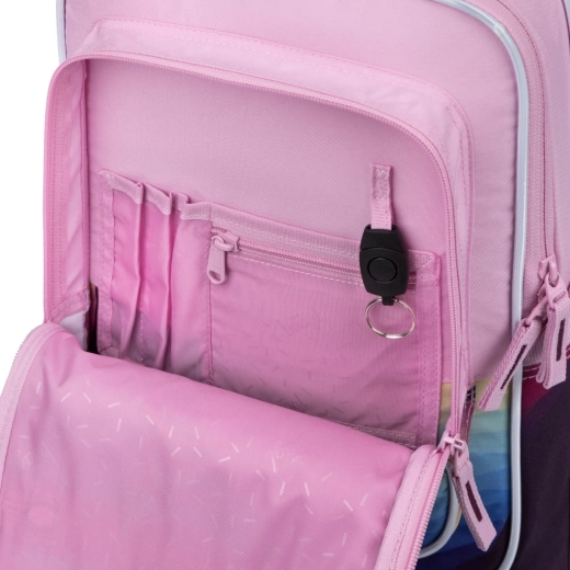 - Komora główna, podwójna rozkładana klapa, wewnętrzna kieszeń, okienko na plan lekcji, bez wyposażenia