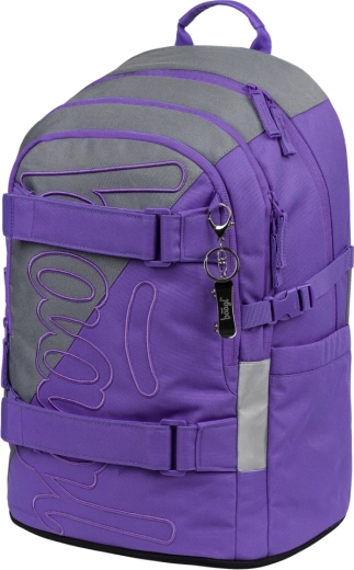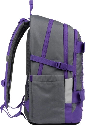 Trzy oddzielnie zamykane komory zapewniają przejrzyste rozmieszczenie szkolnych akcesoriów. Wewnętrzny organizer i wyściełana kieszeń na laptop 15″ lub tablet chronią elektronikę, a boczne kieszenie mieszczą butelkę na wodę. Przednie paski kompresyjne/mocujące bezpiecznie przytrzymają deskorolkę lub bluzę.