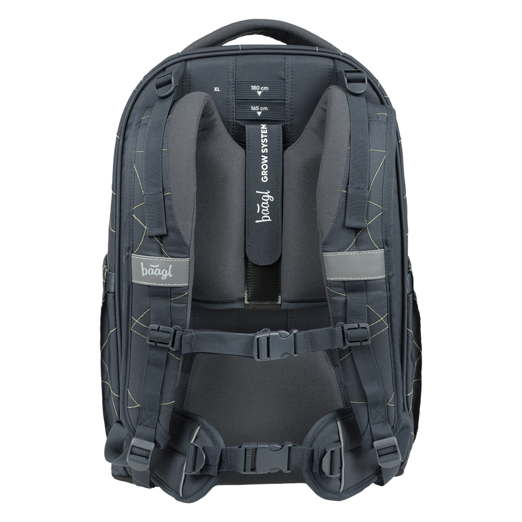 Zestaw szkolny BAAGL Skate Max Wave łączy styl, bezpieczeństwo i funkcjonalność w jednym pakiecie. Lekki plecak z regulowanym systemem pleców rośnie razem z uczniem (ok. 135–185 cm), oferuje świetną ergonomię, odporność na deszcz i liczne elementy odblaskowe dla lepszej widoczności. Zestaw uzupełniają piórnik bez wyposażenia, worek na obuwie lub sport, torba sportowa oraz nerka – wszystko w spójnym designie.