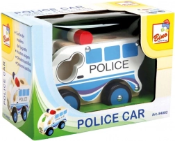 Wytrzymały drewniany policyjny samochodzik Bino ucieszy wszystkich małych stróżów prawa. Wykonany z wysokiej jakości drewna i elementów metalowych, ma gładkie krawędzie, wygodnie leży w dłoni i wspiera rozwój wyobraźni, motoryki małej oraz zabawę w odgrywanie ról. Świetnie uzupełni kolekcję z wozem strażackim i ambulansem z tej samej serii.