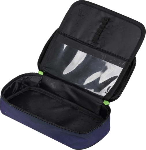 Kompaktowa etui z główną komorą i podwójną odchylaną klapką zapewnia miejsce na artykuły piśmiennicze i drobiazgi. Ma wewnętrzną kieszeń, okienko na plan lekcji, solidne uchwyty suwaków i trwałe zamki YKK. Wykonana z materiału z recyklingu. Dostarczana bez wyposażenia.