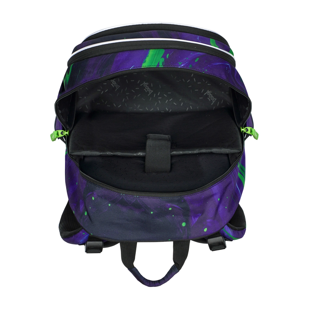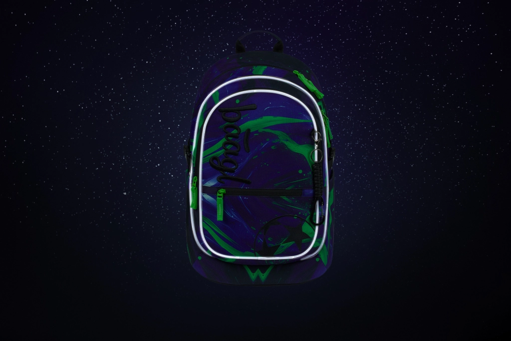 - Kompletny zestaw – piórnik z odchylanymi klapkami, worek ze sznurkami nośnymi, praktyczna nerka i etui na laptop.