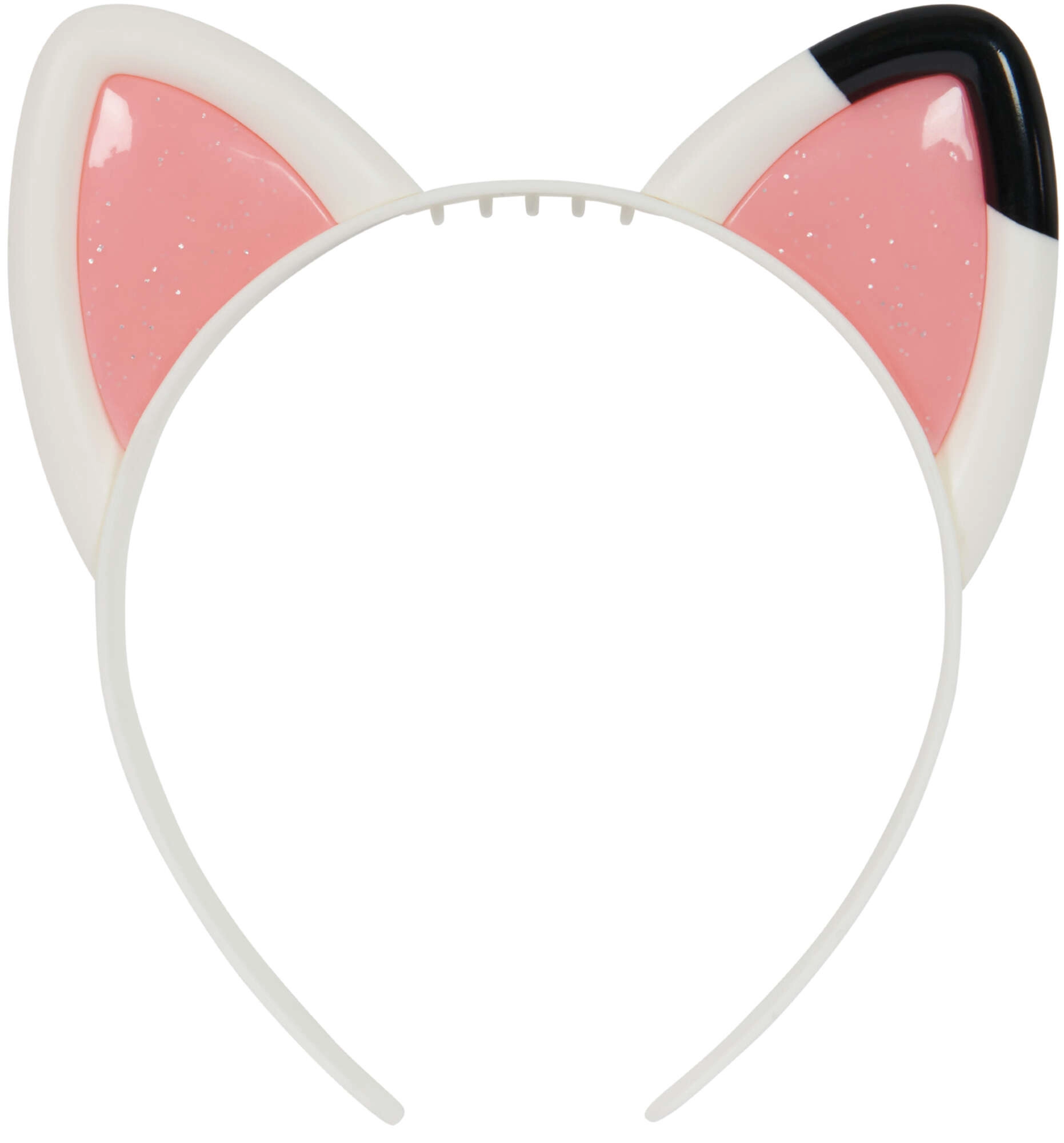 Biała opaska z różowymi, błyszczącymi wnętrzami i czarną kropką na jednym uszku wiernie odwzorowuje wygląd z serialu.