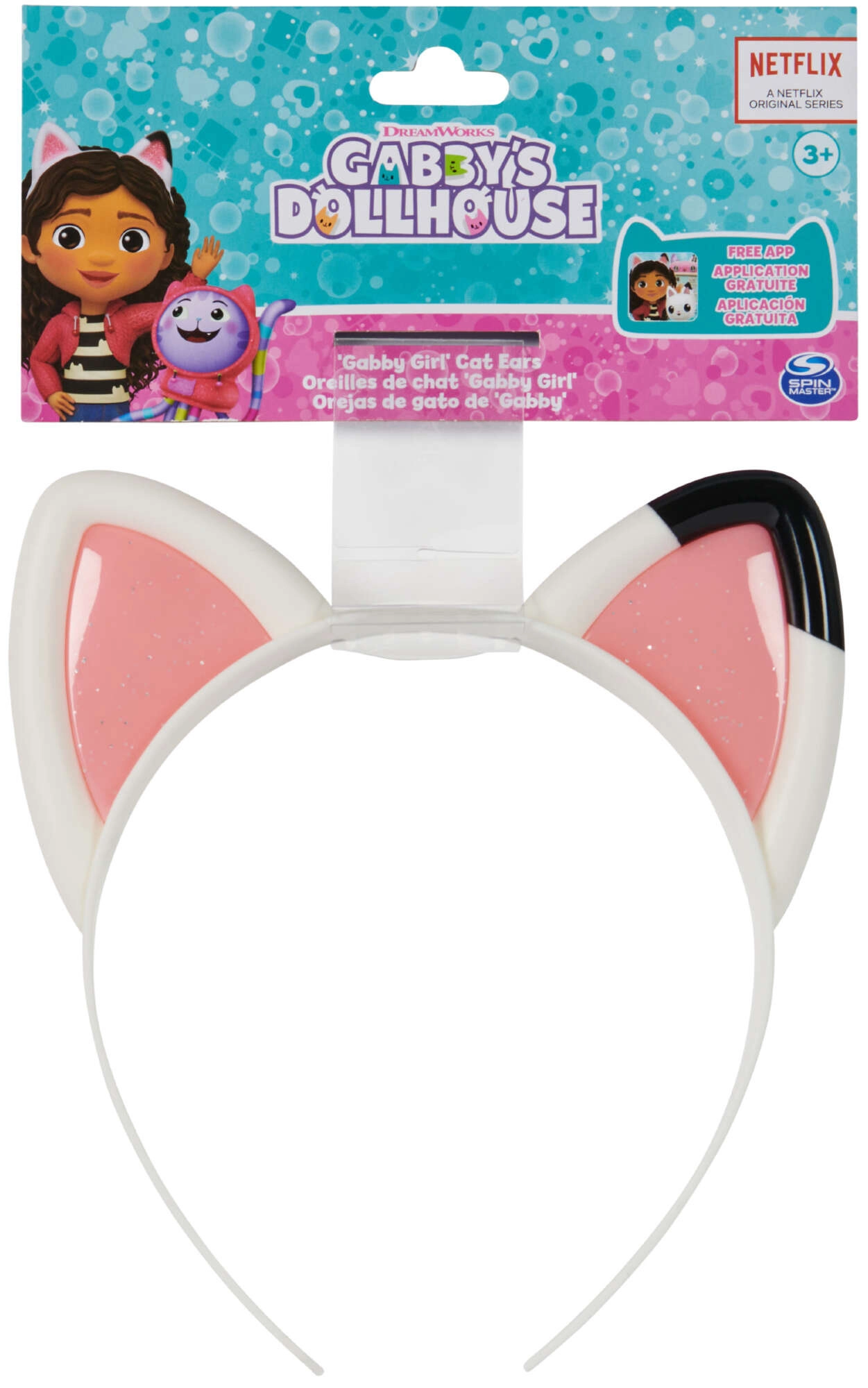 Wejdź do świata fantazji z opaską z kocimi uszkami z uwielbianego serialu GABBY’S DOLLHOUSE. Biała plastikowa opaska z różowymi, błyszczącymi detalami dokładnie odwzorowuje uszka Gabi i wspiera kreatywną zabawę, kostiumy oraz codzienne upiększanie fryzury.