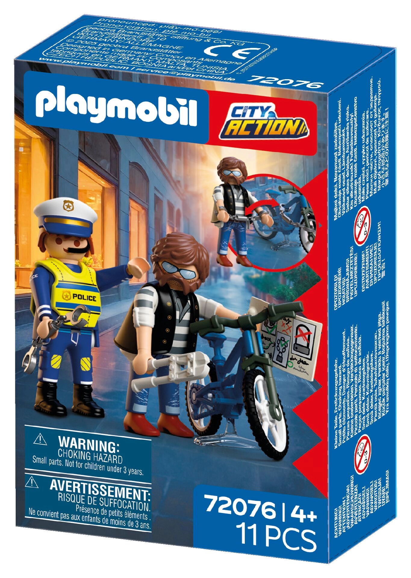 Zestaw Playmobil City Action – Kradzież roweru przenosi emocje prosto do dziecięcego pokoju. Dwie szczegółowo wykonane figurki – policjant i przestępca – oraz bogate akcesoria pozwalają dzieciom wymyślać własne historie pełne pościgów, zatrzymań i sprytnych manewrów. Idealny jako samodzielna zabawa lub jako rozszerzenie innych zestawów PLAYMOBIL.