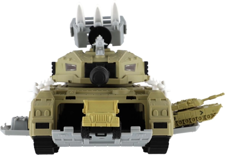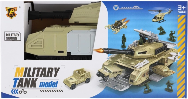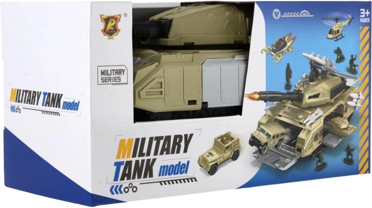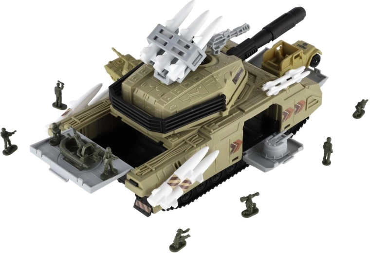 Czołg uzupełniają figurki żołnierzy, pojazdy towarzyszące i helikopter. Dzieci mogą tworzyć rozbudowane sceny oraz rozwijać wyobraźnię i współpracę.