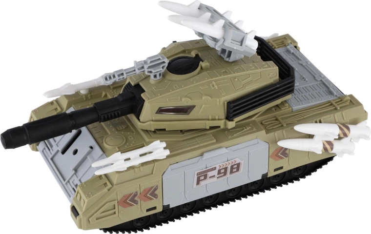 Czołg jeździ na napędzie pchaj‑jedź, więc jest od razu gotowy do akcji – idealny do szybkich przemieszczeń po „polu bitwy” i domowych wyścigów.