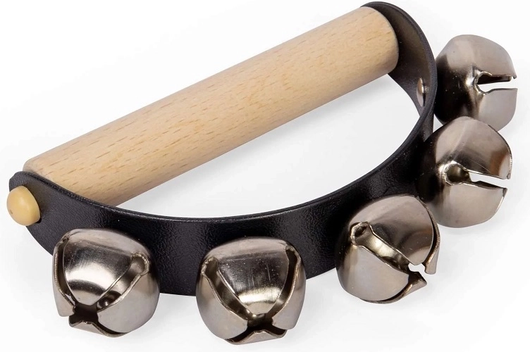 - Drewniana rączka, metalowe dzwoneczki na wytrzymałym pasku