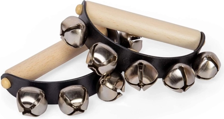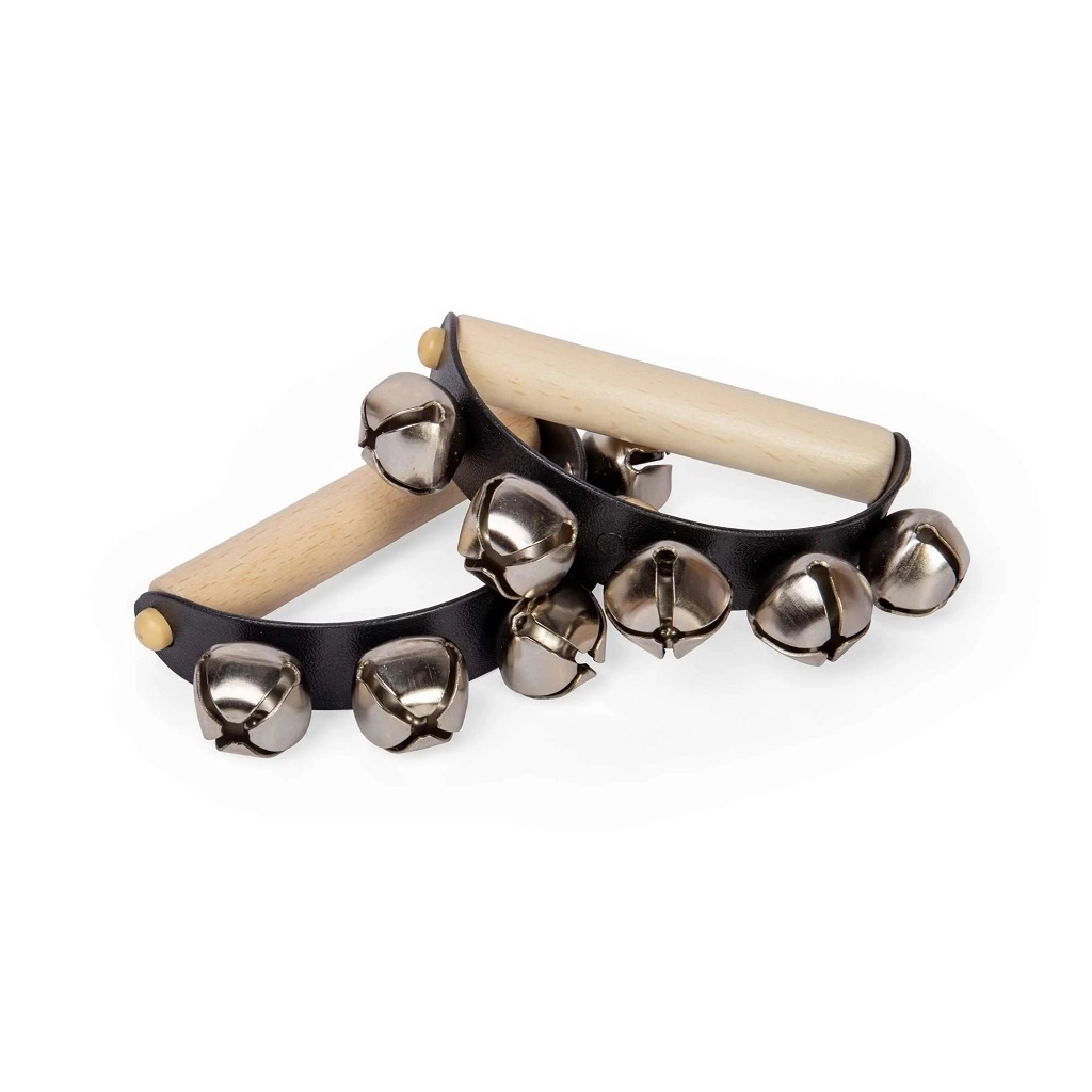 Metalowe dzwoneczki na elastycznym pasku tworzą przyjemny efekt jingle, który wspiera poczucie rytmu i uwagę dzieci.