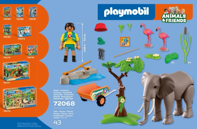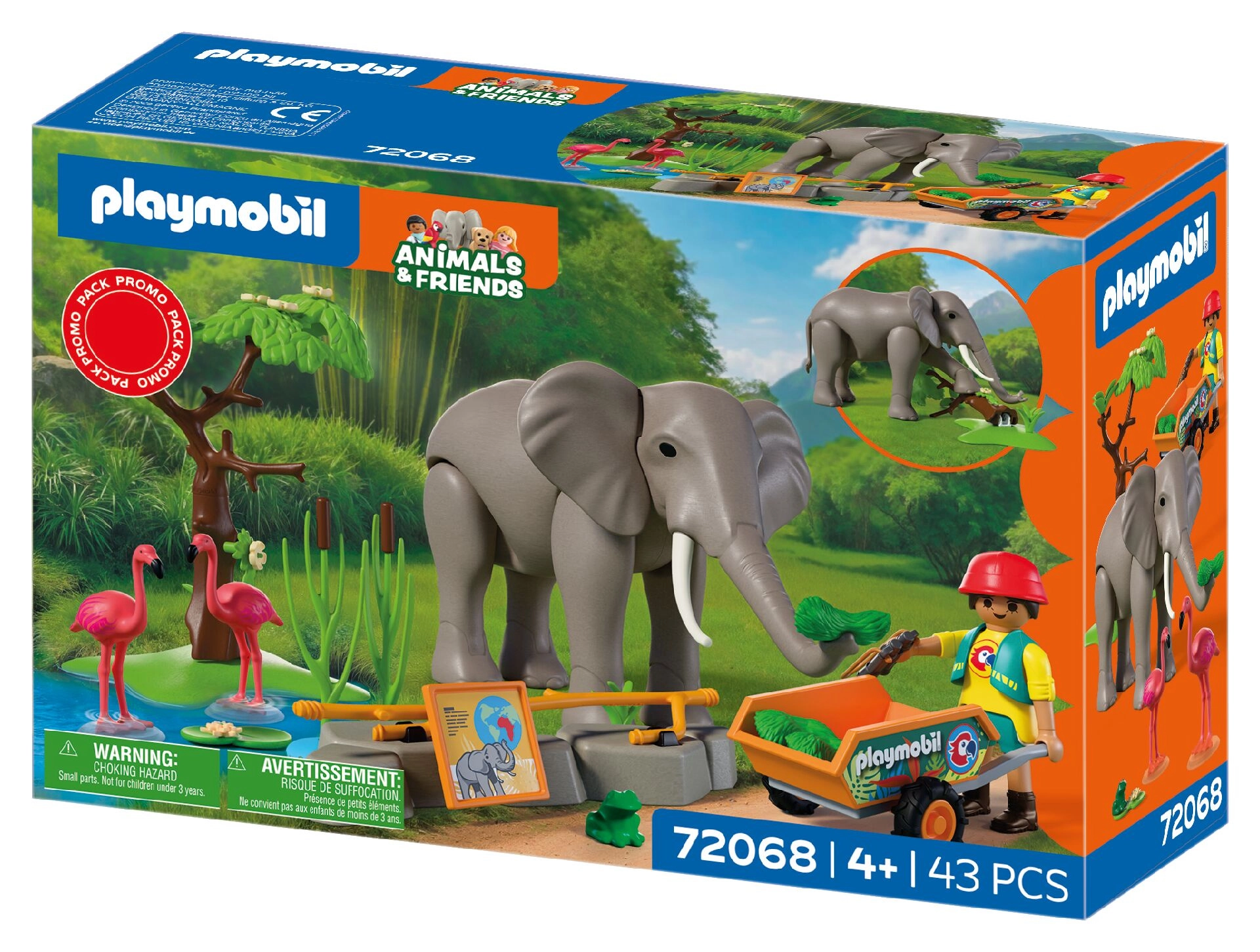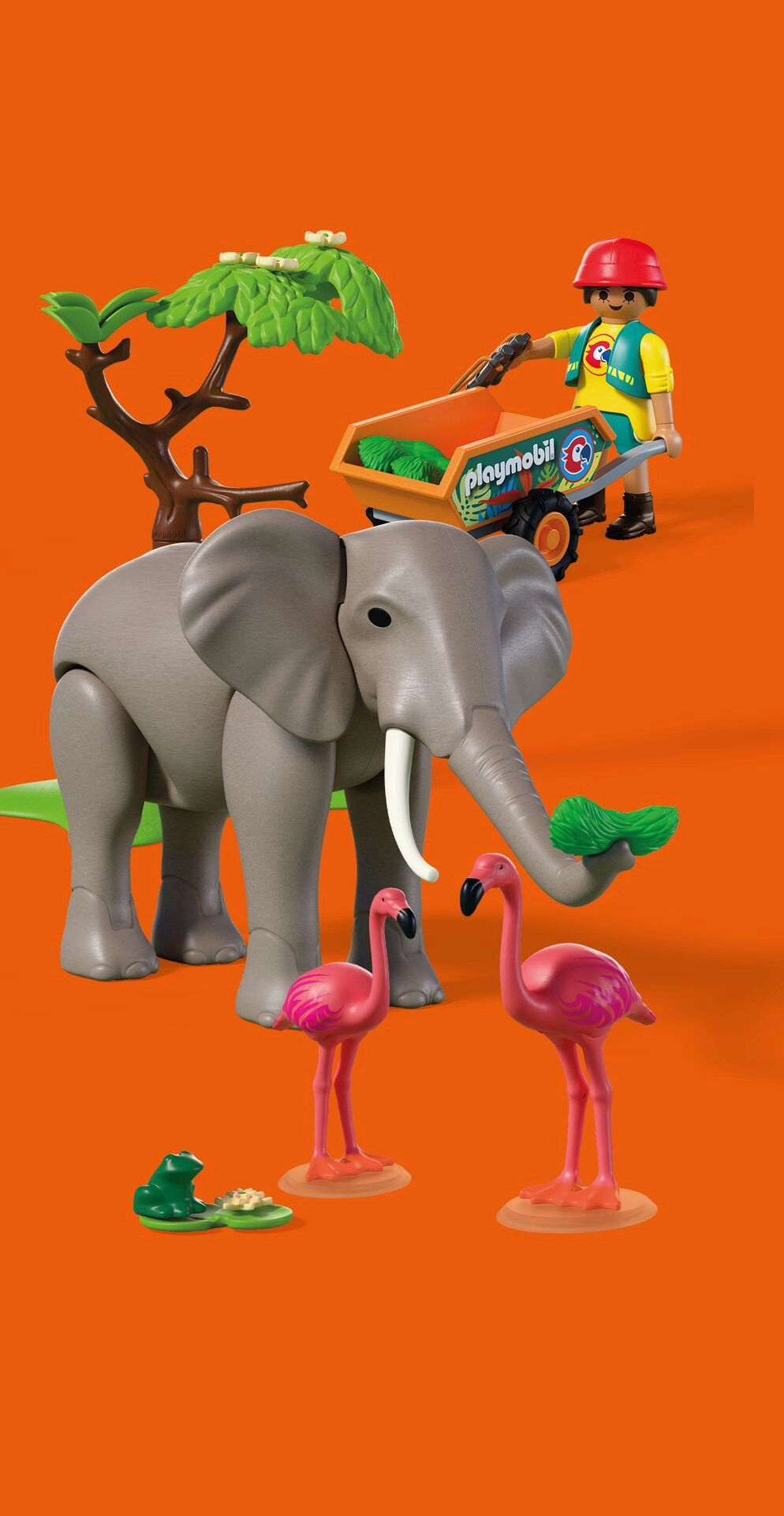 Odkryj radosny świat ZOO z zestawem PLAYMOBIL Animals & Friends, gdzie majestatyczny słoń żyje w wybiegu z flamingami i małą żabką. Ruchomy słoń potrafi poruszać kończynami, chwytać pożywienie trąbą, a nawet przewrócić drzewo, co dodaje zabawie realizmu i emocji. Opiekunka wozi świeżą karmę na wózku i obserwuje zwierzęta przez lornetkę. Nie brakuje zbiornika wodnego, zieleni oraz licznych akcesoriów do nieskończonych opowieści.