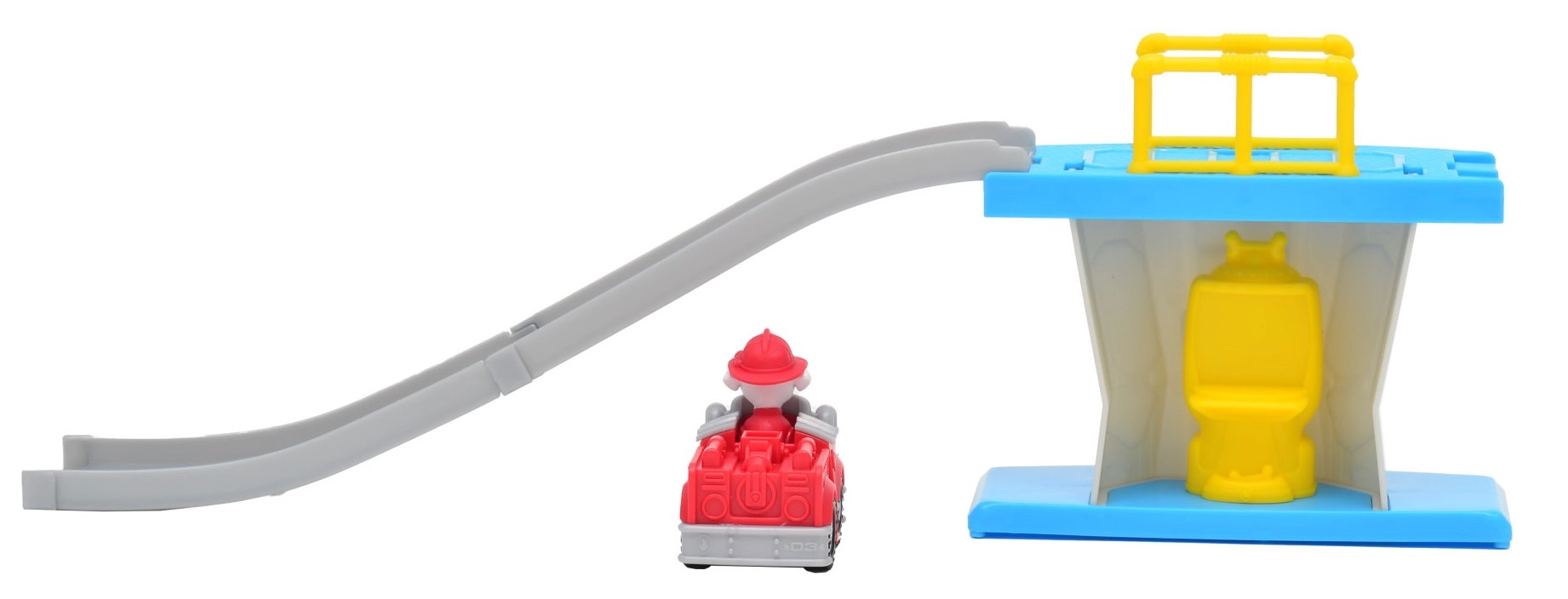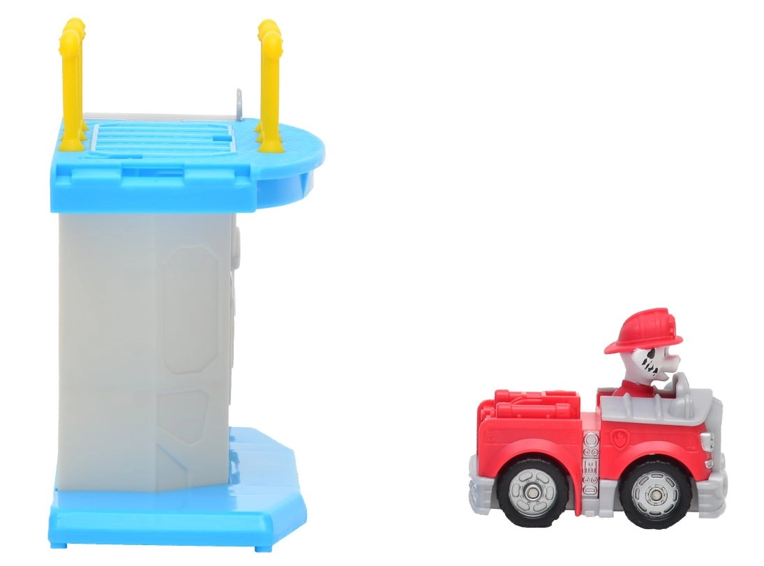Ten kolorowy zestaw inspirowany uwielbianym serialem Psi Patrol zapewnia dzieciom codzienną dawkę zabawy. Wieża z uruchamianą rampą umożliwia pojazdowi płynny zjazd i wyruszenie na akcję ratunkową. W komplecie znajduje się mini wóz strażacki Marshalla z na stałe zintegrowaną figurką szczeniaka, co pozwala na szybki start zabawy.