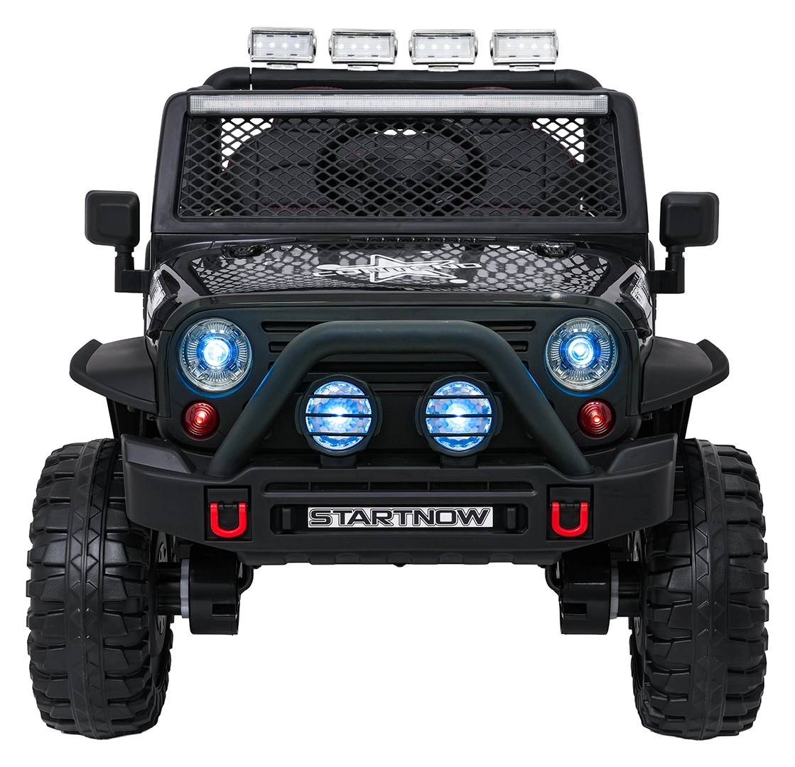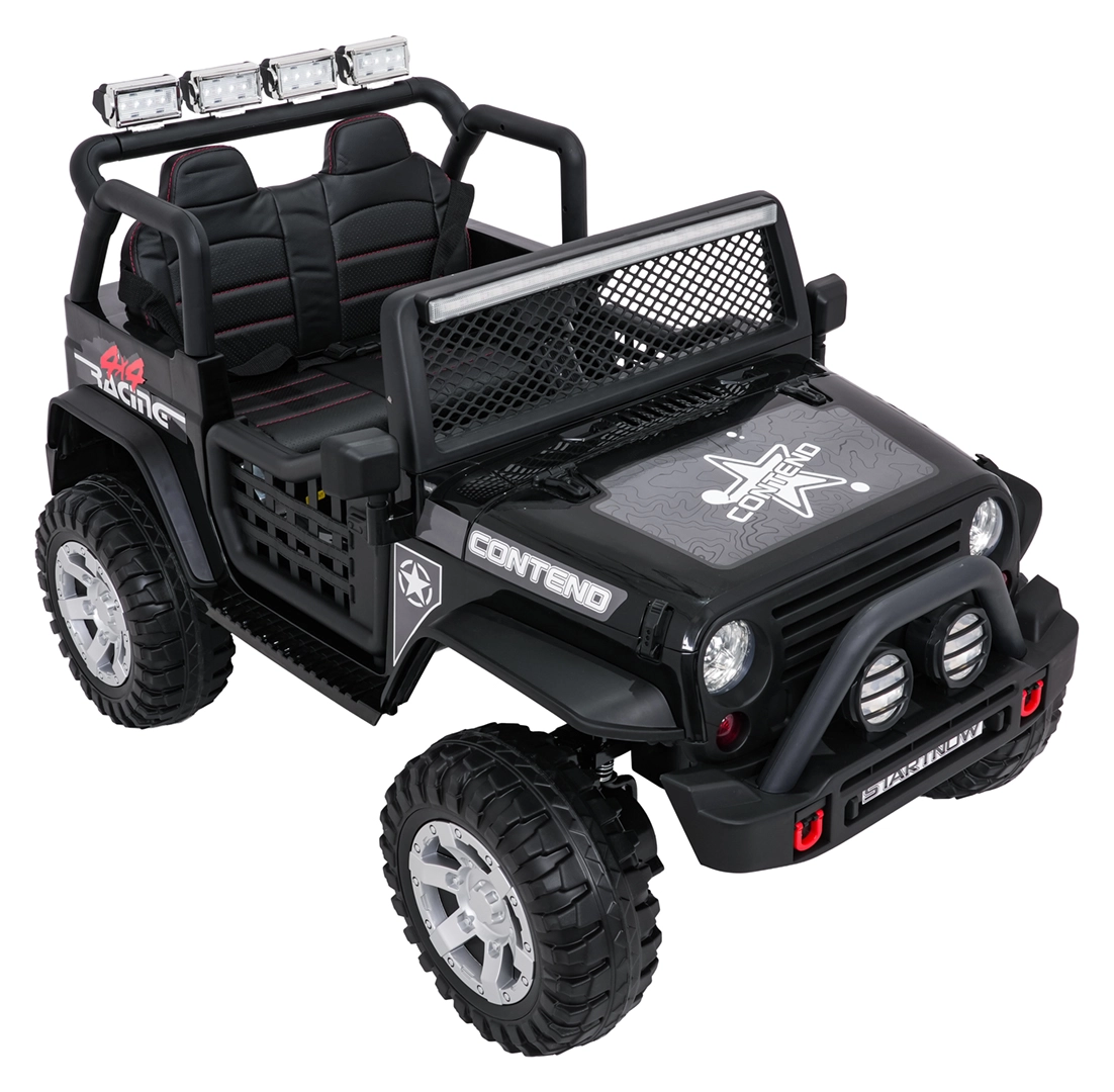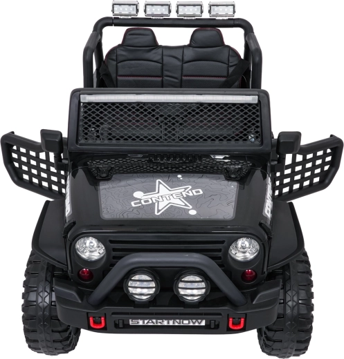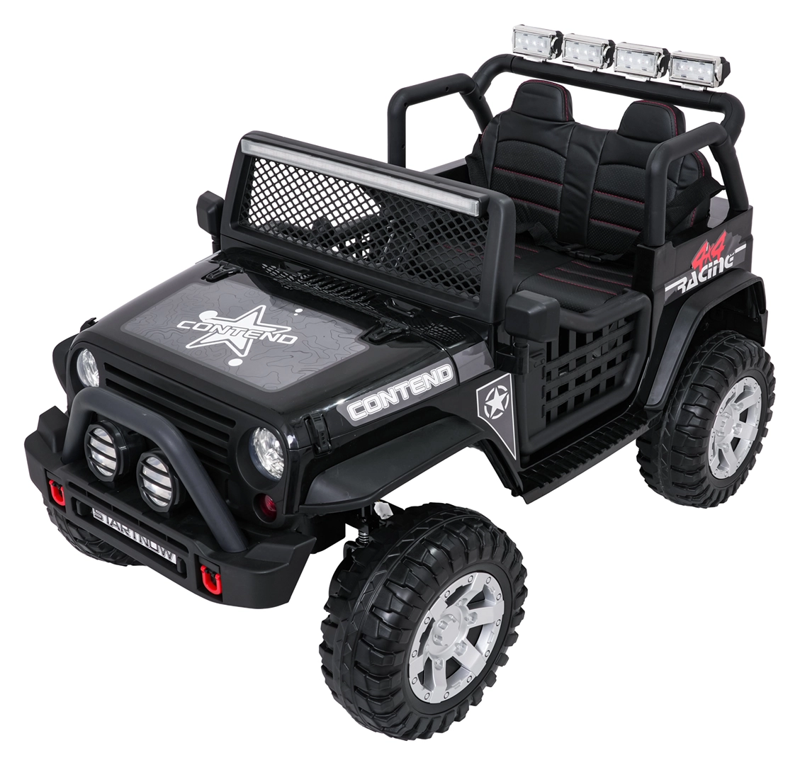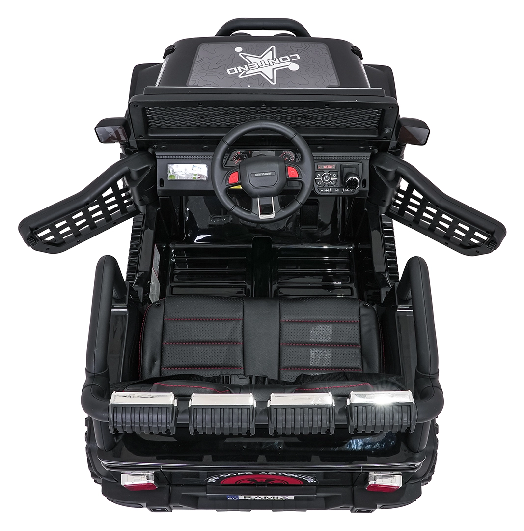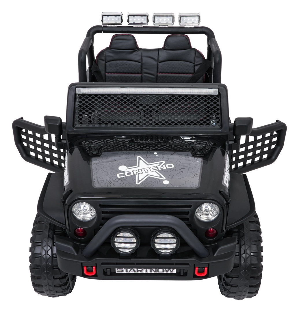 Ten czarny terenowy champion stworzony jest do przygód. Dzięki napędowi na cztery koła 4x4, wysokiemu prześwitowi i miękkim kołom EVA pokona nierówności i ogrodowy teren. Płynny start, dwa biegi oraz jazda do przodu/tyłu zapewniają wygodne i bezpieczne sterowanie. Oświetlenie LED (przednie, tylne i dachowa belka) dodaje realistycznego wyglądu i lepszej widoczności.