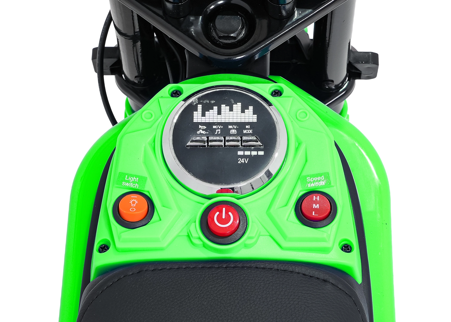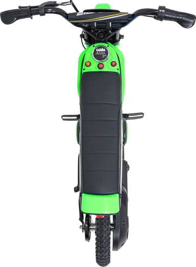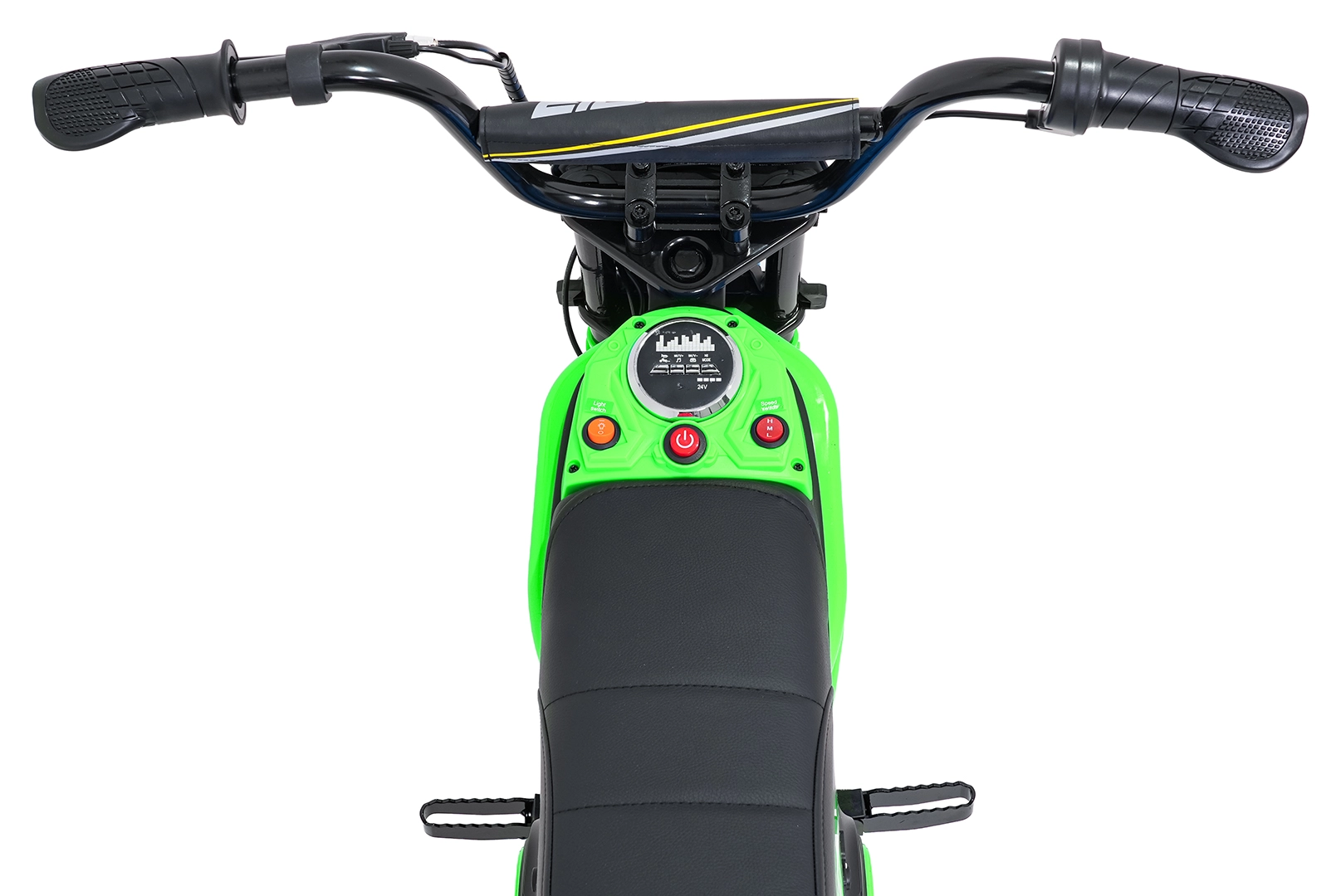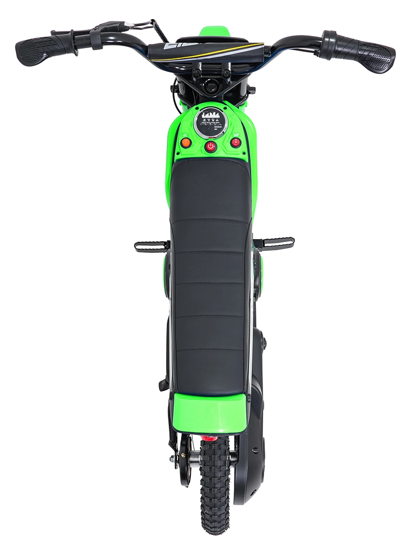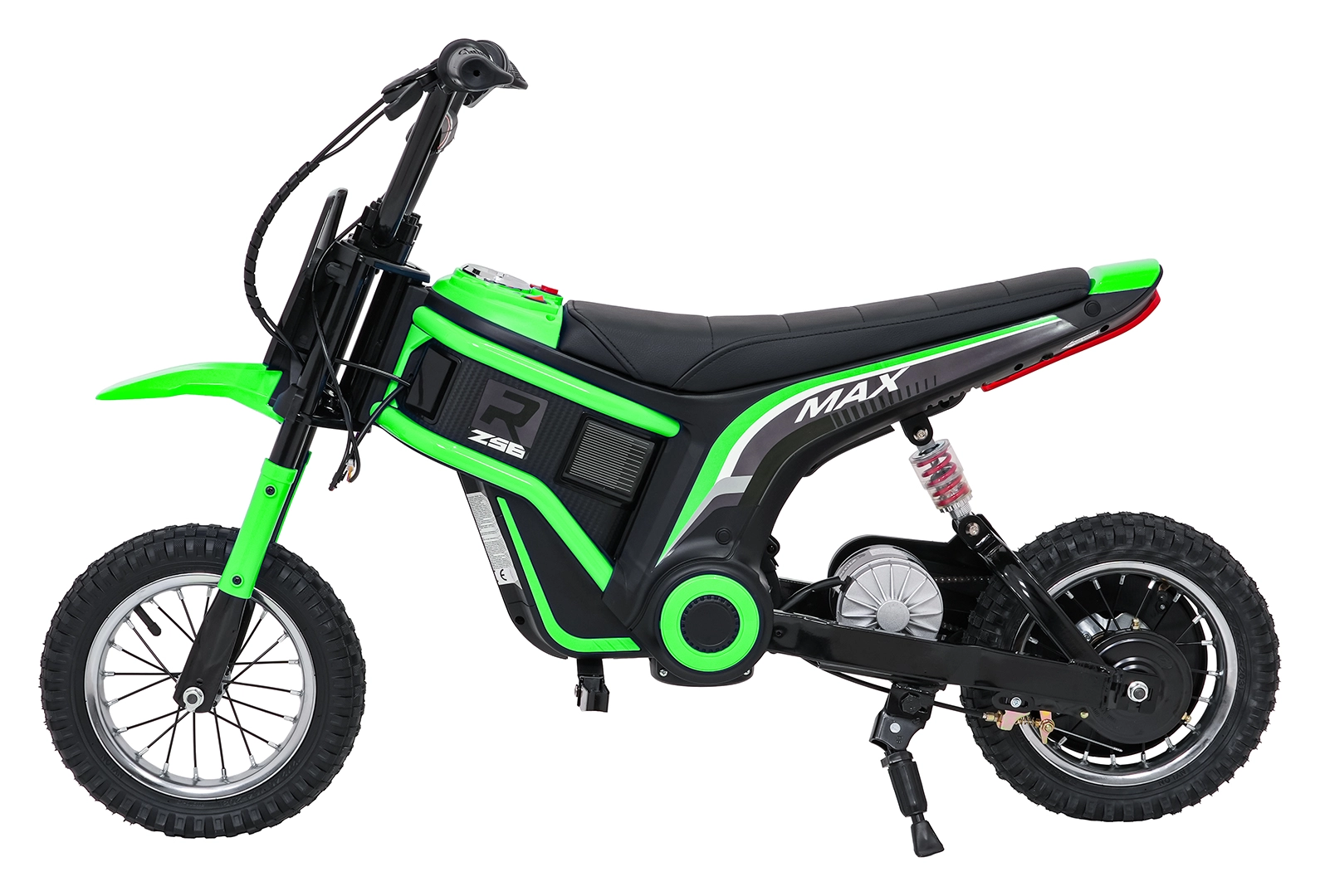 Dziecięcy elektryczny motocykl crossowy RZ56 Max w zielonym kolorze to idealny wybór dla młodych kierowców, którzy chcą doświadczyć prawdziwego off-roadu. Dzięki wydajnemu silnikowi 350W z napędem łańcuchowym i systemowi akumulatorów 24V oferuje żwawy start, płynne ruszanie i stabilną moc. Tylni amortyzator oraz pompowane koła 30×5 cm zapewniają komfort i pewność na różnych nawierzchniach.
