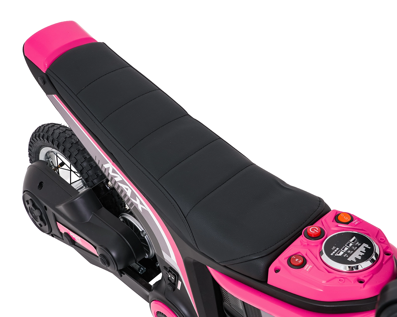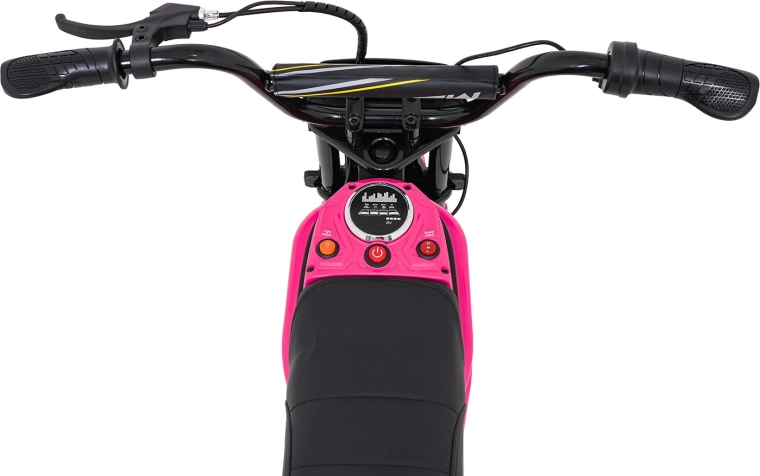Wydajny silnik 350 W zasilany zestawem baterii 24 V dostarcza mocy do świetnej zabawy, a przejrzysty panel sterowania ze wskaźnikiem poziomu baterii, przyciskiem zasilania i przełącznikiem prędkości ułatwia obsługę. Panel audio z Bluetooth, wbudowanymi melodiami i klaksonem dodaje jeszcze więcej frajdy.