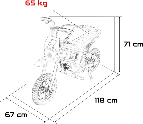 Odkryj radość z jazdy z elektrycznym motocyklem dla dzieci RZ56 Max. Solidna rama, pompowane opony terenowe i tylny amortyzator zapewniają stabilność oraz komfort na różnych powierzchniach. Dzięki trzystopniowej regulacji prędkości (L/M/H) i płynnemu startowi młodzi kierowcy czują się pewnie i bezpiecznie.