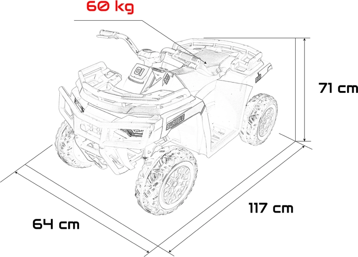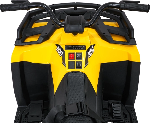 Mocny i bezpieczny quad dla małych odkrywców: napęd 4x200 W, akumulator 24 V / 10 Ah, miękkie koła EVA, światła LED oraz rozbudowany panel audio (MP3, Bluetooth, USB, SD). Stabilna konstrukcja, płynny start, dwa biegi oraz zdalne sterowanie 2,4 GHz z awaryjnym przyciskiem Stop zapewniają spokojną i świetną zabawę na świeżym powietrzu.