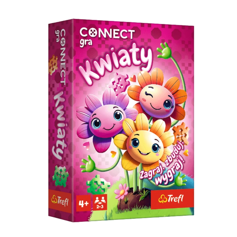 Connect Kwiaty to dynamiczna rodzinna gra, w której dzieci i dorośli jak najszybciej łączą pasujące pary kart z kolorowymi kwiatowymi motywami. Ma proste zasady, rozwija spostrzegawczość, pamięć i refleks, a dzięki kompaktowemu opakowaniu jest idealna w podróż i na rodzinne spotkania.