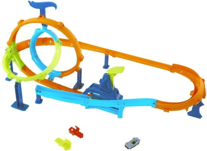 Ten dynamiczny tor wyścigowy został zaprojektowany dla maksymalnej frajdy i emocjonujących pojedynków. Dzięki podwójnej pętli i szybkiemu wyrzutowi autek samochodziki pędzą przez trasę z błyskawiczną prędkością i wpadają prosto w strefy pełne zderzeń i efektów. Idealny dla dzieci, które kochają dynamiczną zabawę i rywalizację.