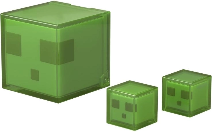 Półprzezroczyste zielone slimy z pikselowymi twarzami można układać i eksponować. Różne rozmiary ożywią twoje dioramy i dynamiczne potyczki.