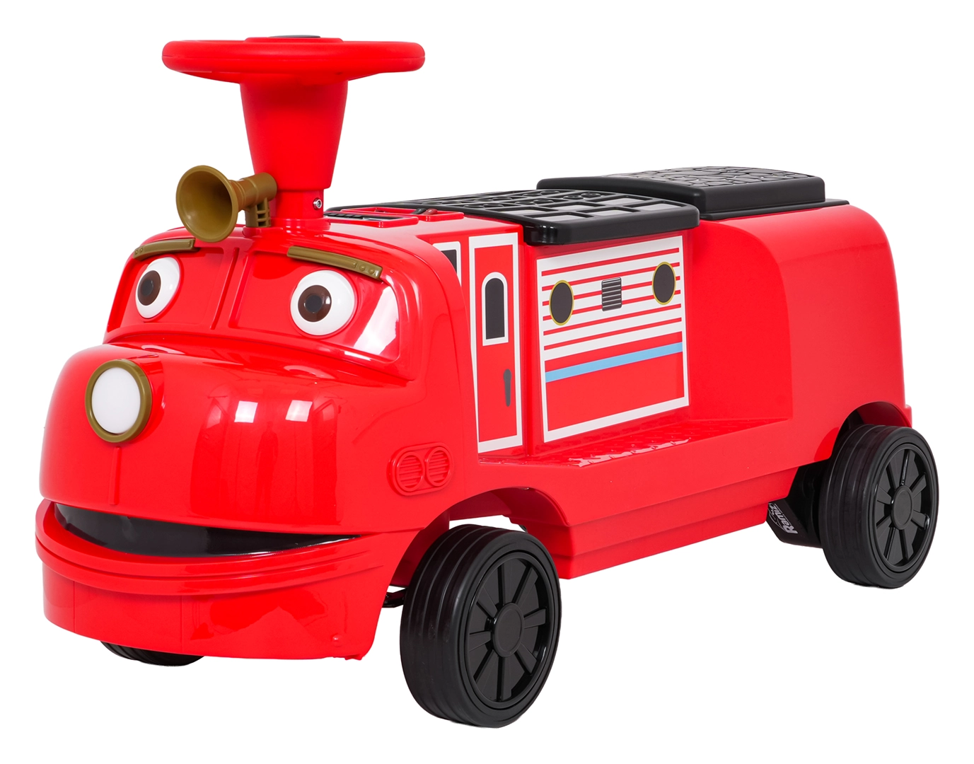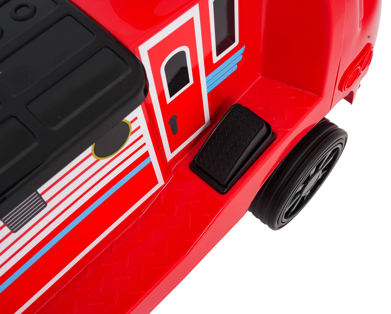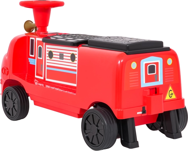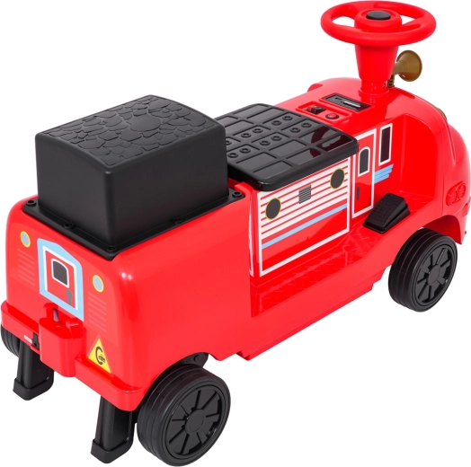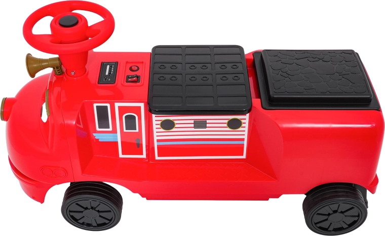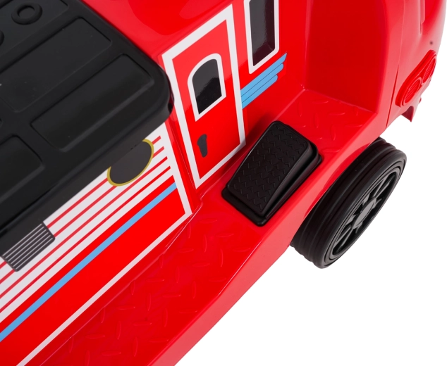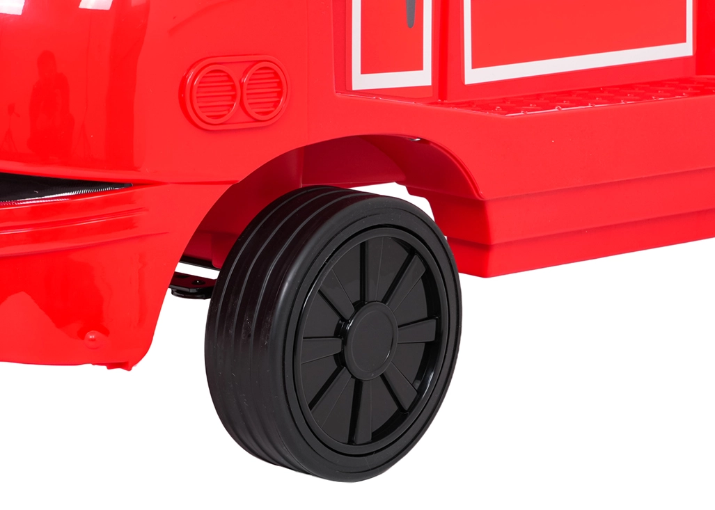 Ta stylowa dziecięca lokomotywa inspirowana wozem strażackim łączy stabilność jeździka z zaletami napędu elektrycznego. Dwa silniki 2×35 W i akumulator 12 V/7 Ah zapewniają dość mocy do jazdy po chodniku i w domu. Gumowe koła gwarantują dobrą przyczepność i cichą pracę, a płynny start chroni dziecko przed szarpnięciem przy ruszaniu.