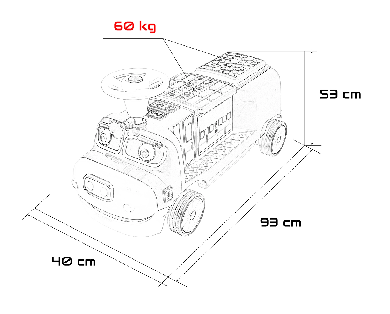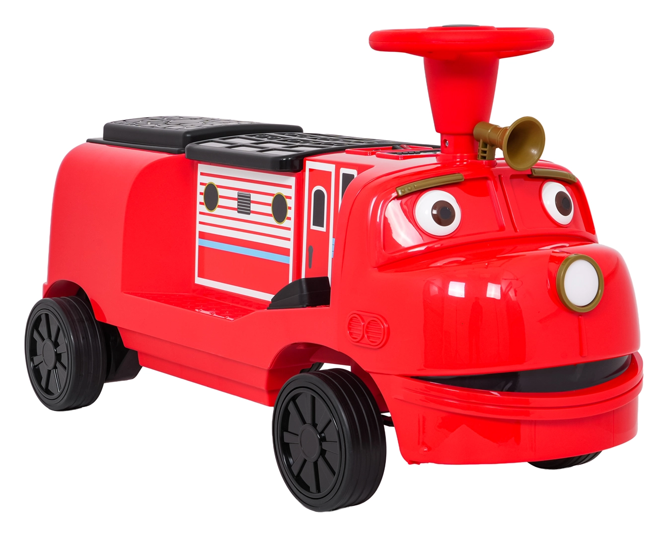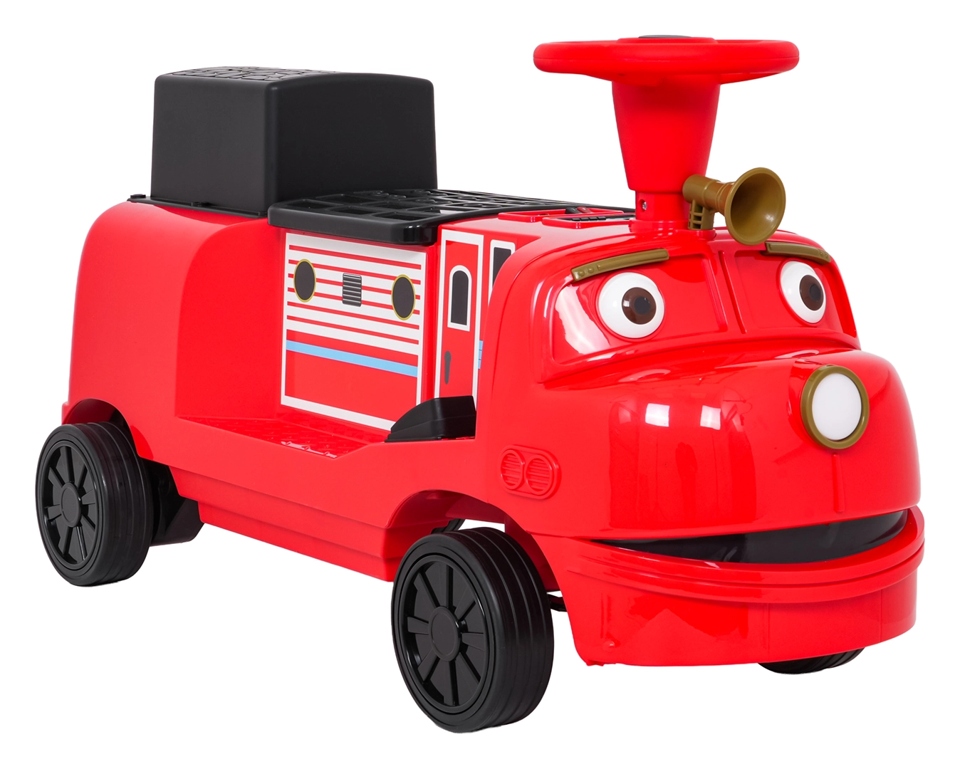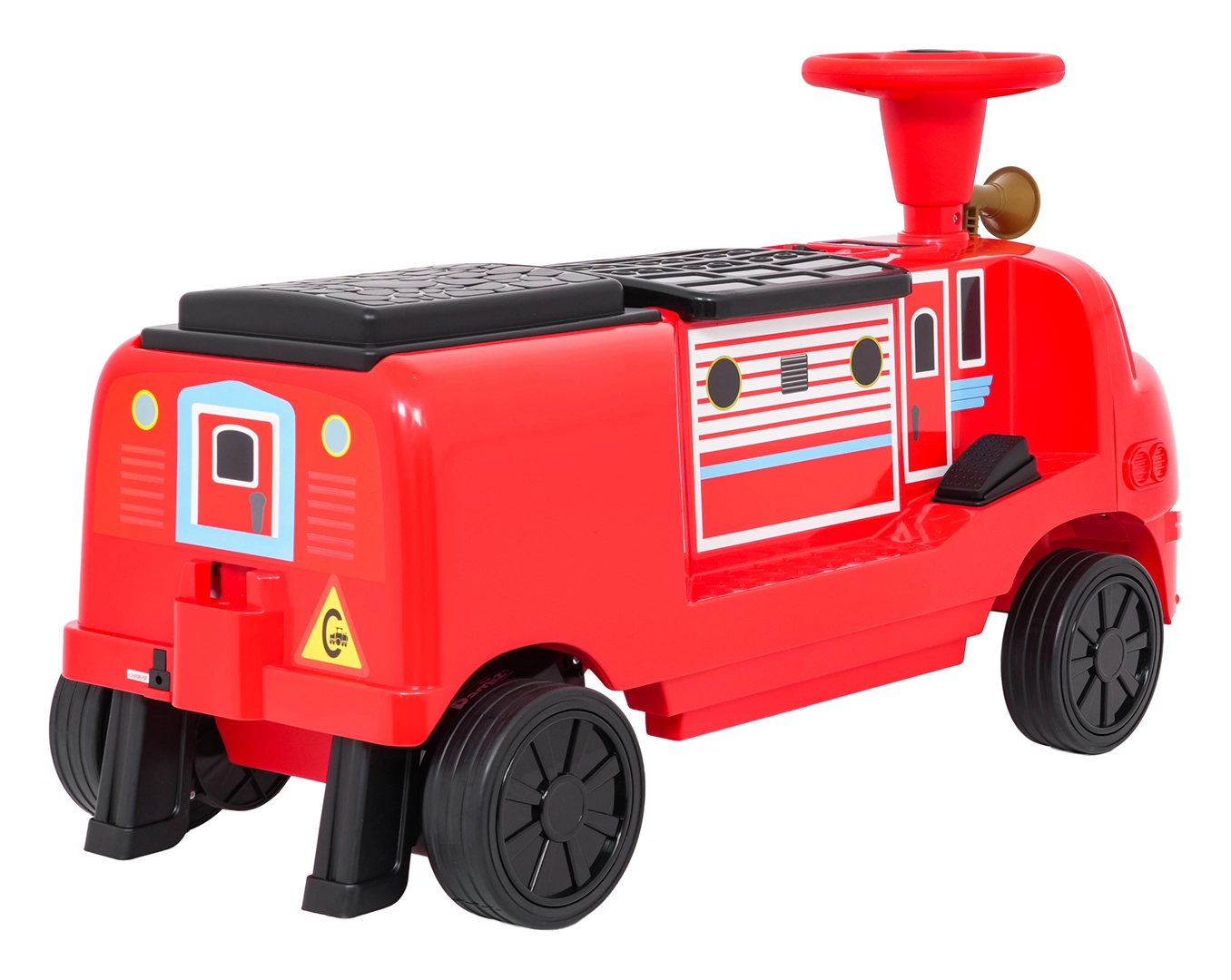 Ta stylowa dziecięca lokomotywa inspirowana wozem strażackim łączy stabilność jeździka z zaletami napędu elektrycznego. Dwa silniki 2×35 W i akumulator 12 V/7 Ah zapewniają dość mocy do jazdy po chodniku i w domu. Gumowe koła gwarantują dobrą przyczepność i cichą pracę, a płynny start chroni dziecko przed szarpnięciem przy ruszaniu.