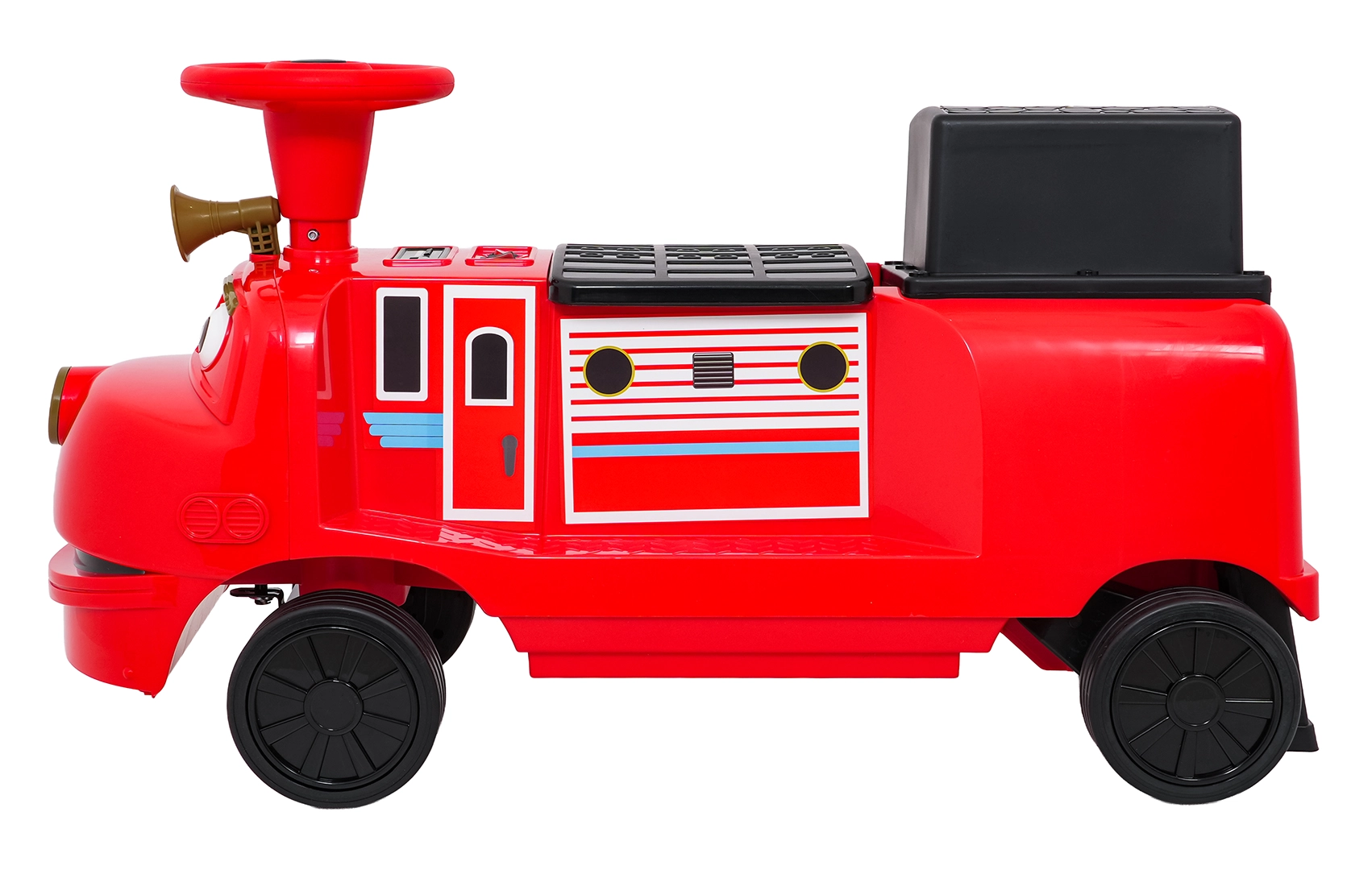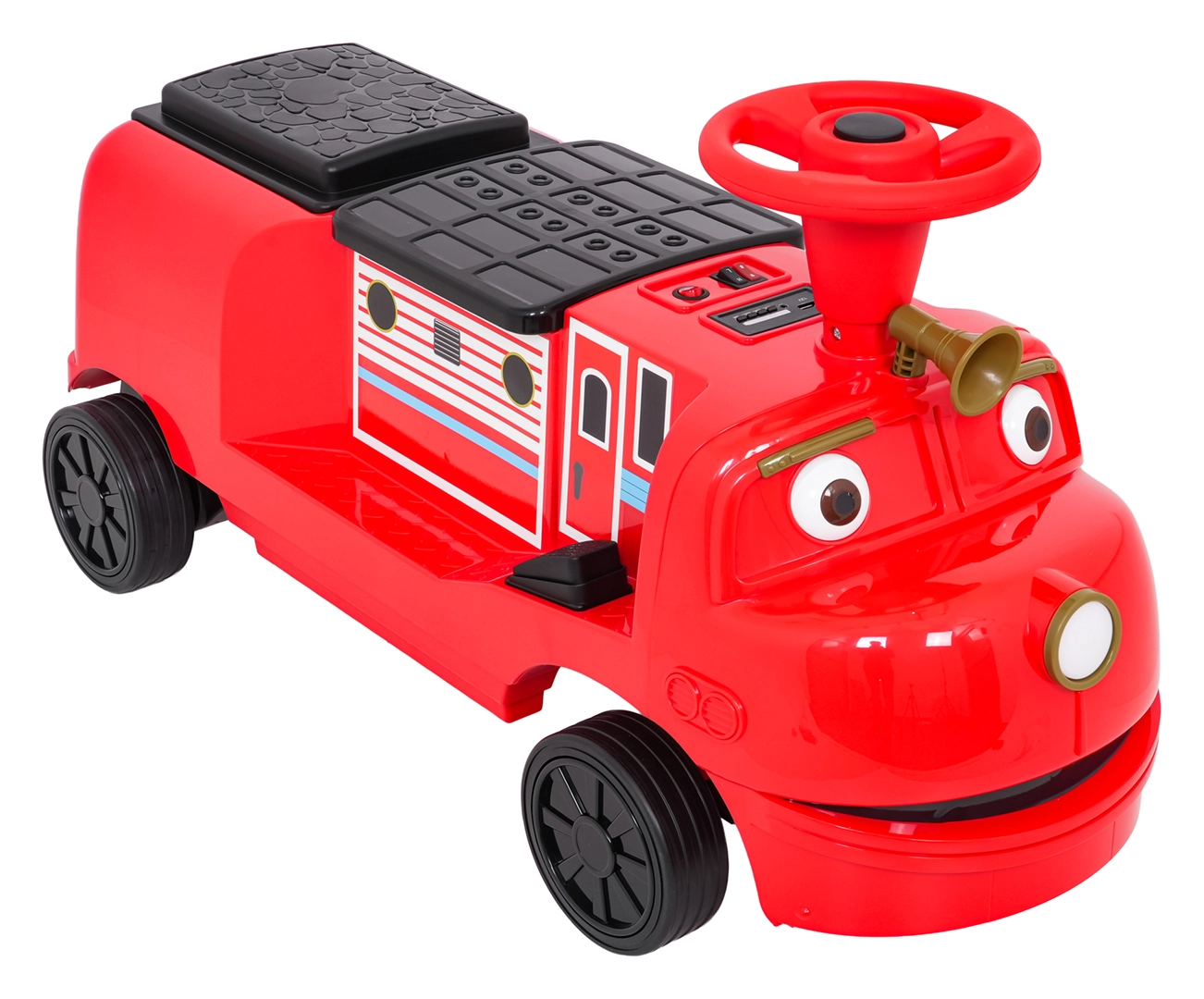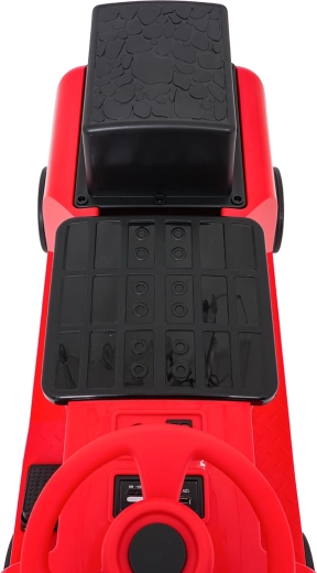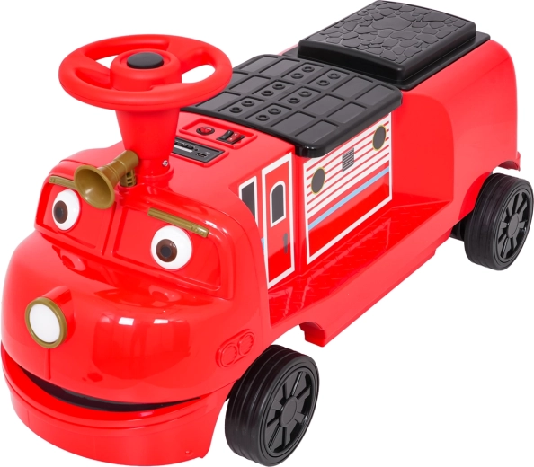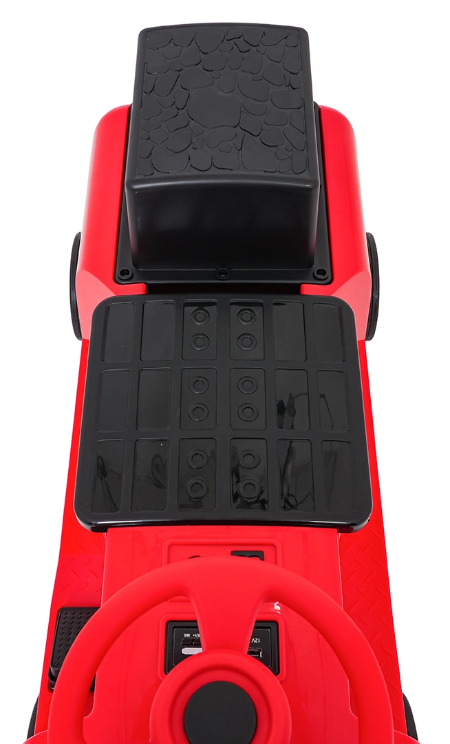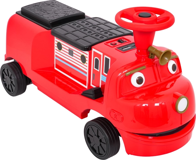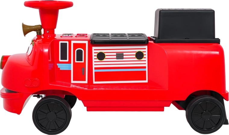 Zabawna czerwona lokomotywa z napędem elektrycznym dla dzieci oferuje dwa silniki 2×35 W, wydajny akumulator 12 V/7 Ah oraz gumowe koła dla płynnej i cichej jazdy. Dzięki płynnemu startowi, dwóm prędkościom do przodu i przednim światłom LED mali maszyniści będą cieszyć się bezpieczną i atrakcyjną jazdą. Zintegrowany panel audio z Bluetooth, MP3, USB i AUX odtworzy ulubione melodie, nie brakuje też przycisku dźwięku i klaksonu. Maksymalne obciążenie aż 60 kg oraz podwójne siedzisko zapewnią mnóstwo zabawy także dla rodzeństwa.