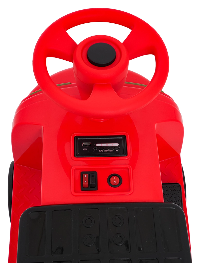 Odtwarzaj ulubione piosenki przez Bluetooth, USB, AUX lub MP3. Do dyspozycji są wgrane melodie oraz przycisk dźwięku z klaksonem dla jeszcze większej frajdy.