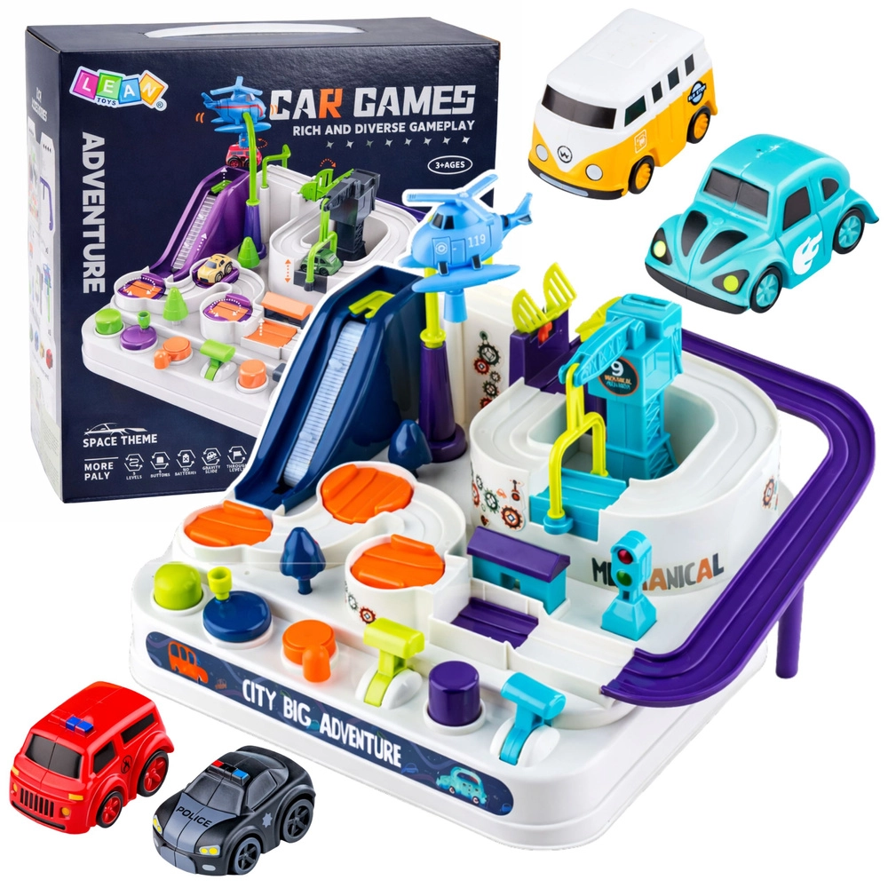 Odkryj zabawkę, która łączy logiczne myślenie, małą motorykę oraz aktywne granie bez baterii. Interaktywny zestaw toru przeszkód z parkingiem oferuje mechaniczne sterowanie przyciskami i dźwigniami, mnóstwo zakrętów, mostów i wind, a do tego zawiera 4 autka i helikopter na długie godziny twórczej zabawy.