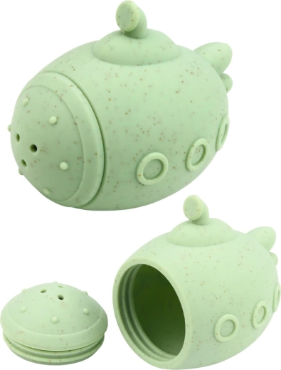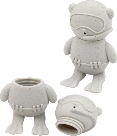 Napełnij figurkę wodą i delikatnie ściśnij – strumień wody tryska z otworów, zamieniając kąpiel w radosną grę.