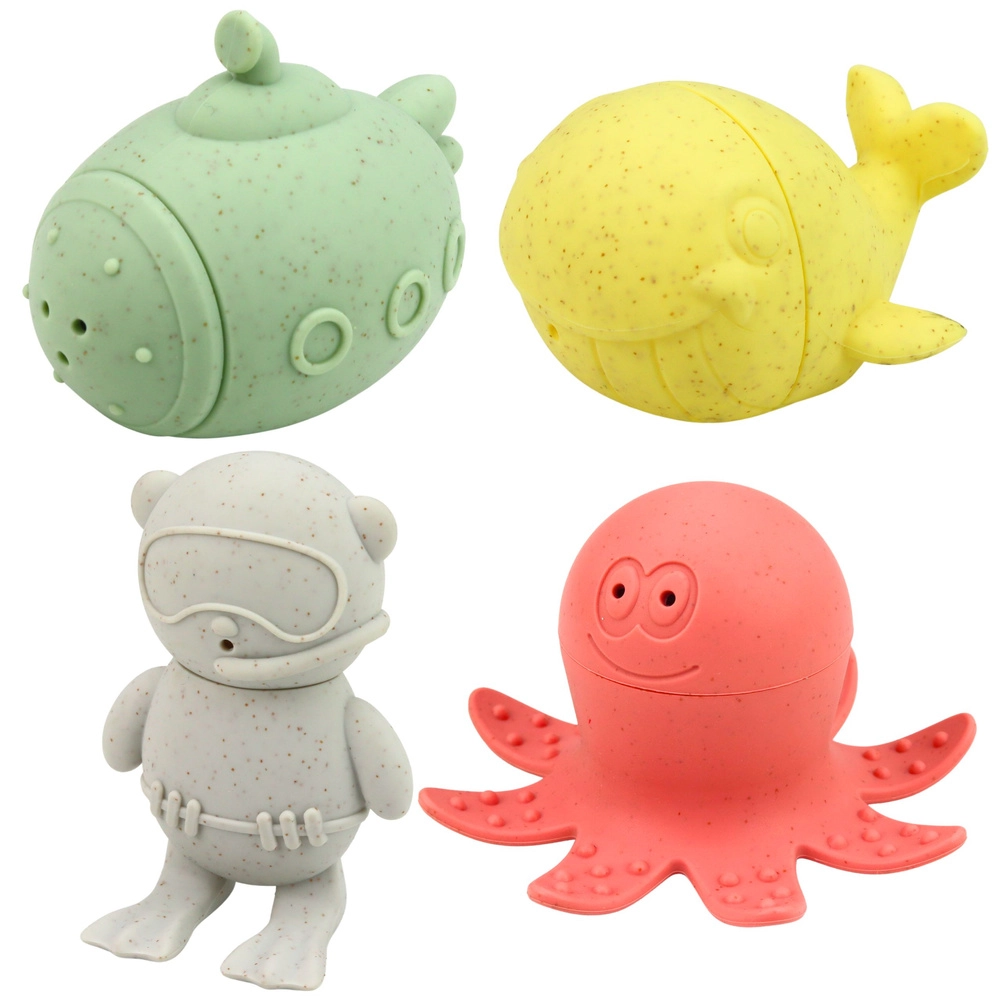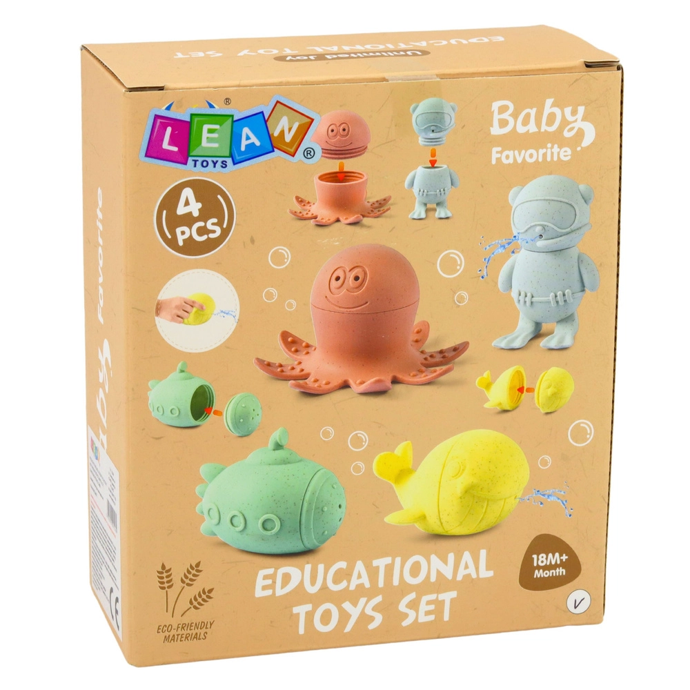 Odkryj zabawny zestaw dla najmłodszych: cztery pastelowe figurki do wody – wieloryb, łódź podwodna, nurek i ośmiornica. Wykonane z miękkiego materiału, łatwo mieszczą się w małych rączkach. Każdą zabawkę można rozdzielić na dwie części, co ułatwia czyszczenie, a po napełnieniu wodą i ściśnięciu rozpryskują wodę. Wspierają rozwój zmysłów, małą motorykę i przynoszą radość z kąpieli w domu i w ogrodzie.