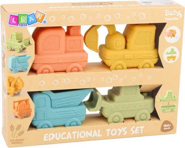 Ten uniwersalny zestaw gumowych pojazdów budowlanych stworzono do codziennej zabawy w pokoju dziecięcym, w wannie i w basenie. Miękki i przyjemny materiał jest delikatny dla dziecięcych rączek, zabawki świetnie pływają i dzięki zaokrąglonym kształtom są bezpieczne nawet dla najmłodszych.